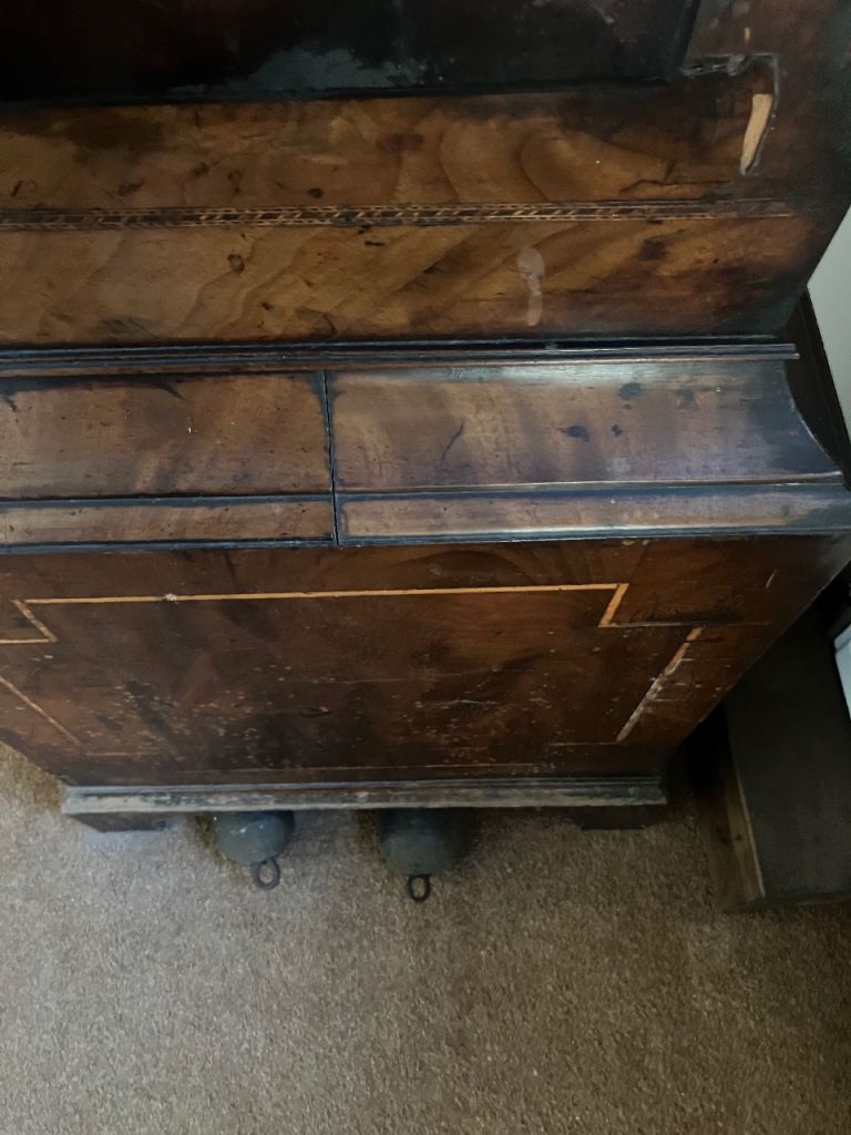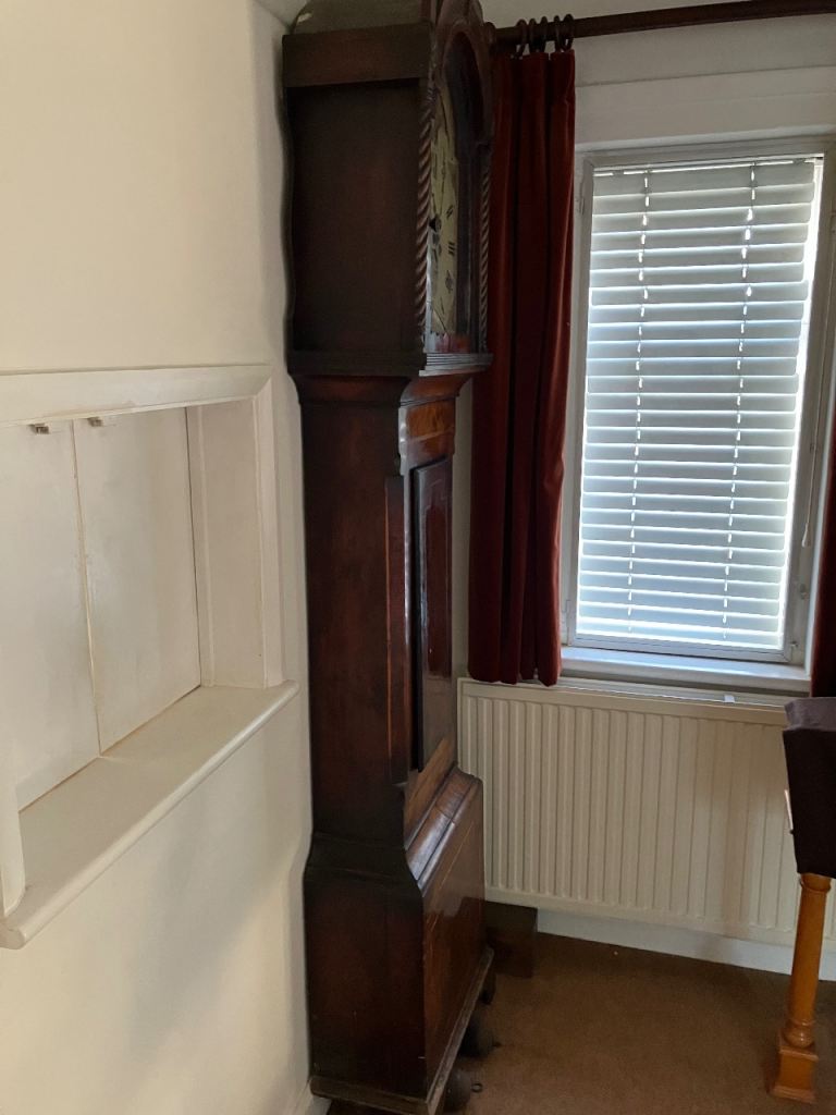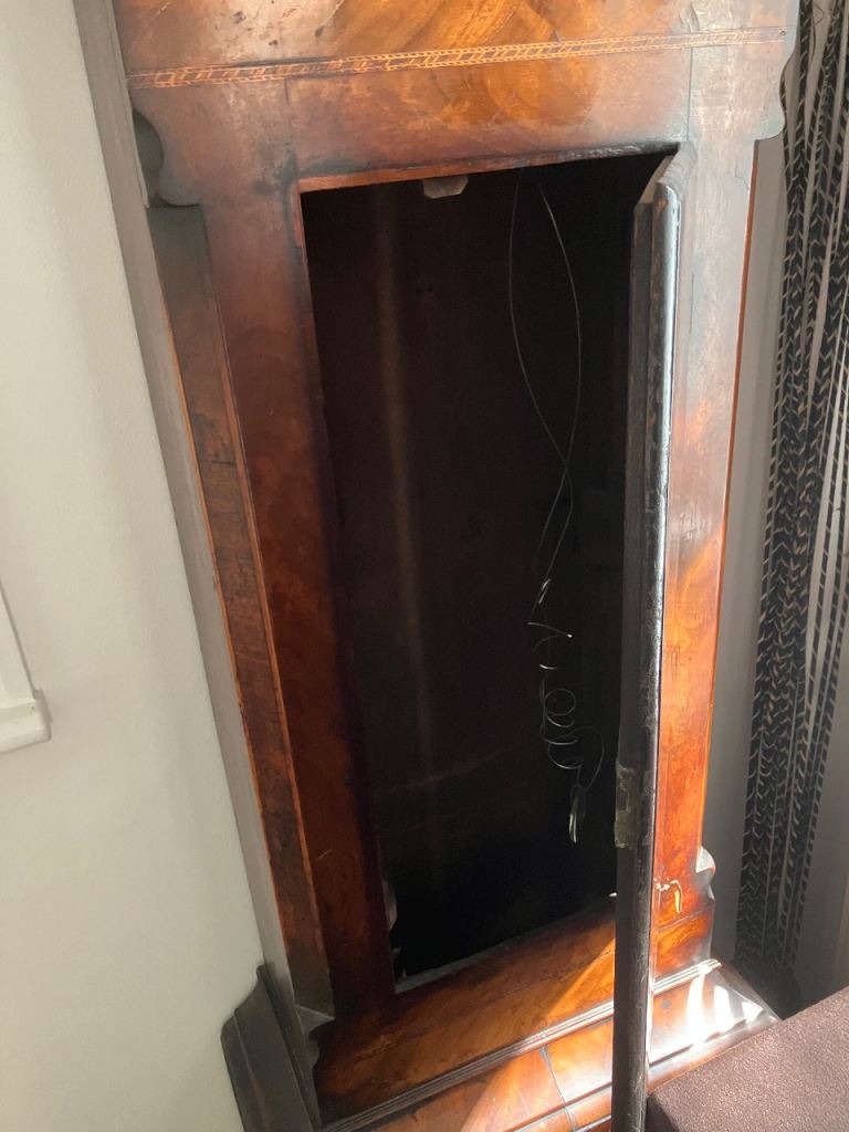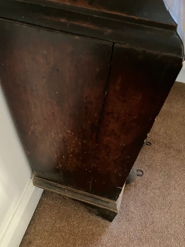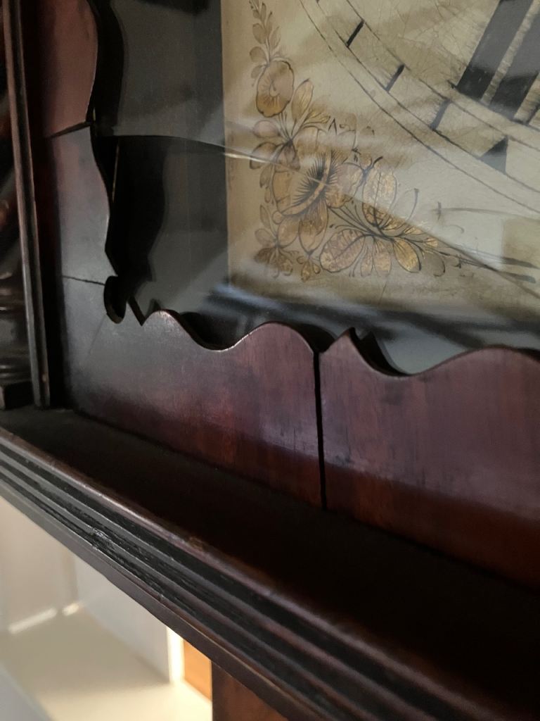 The glass front is also cracked ( see photo) so I haven't opened to take a photo of mechanism inside incase glass falls out. It was working years ago. This is an old antique clock so is not as new and has some cracks on wood see photos but ideal for someone who knows about clocks to restore. House sale is reason for sale of clock.