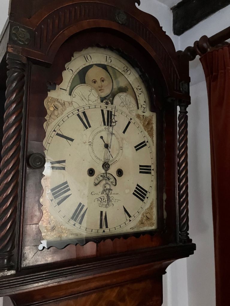 An Antique Moonface grandfather clock George Wadham of Bath maker