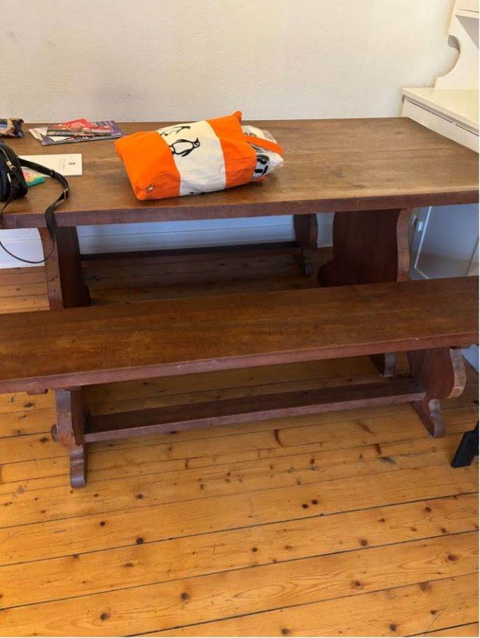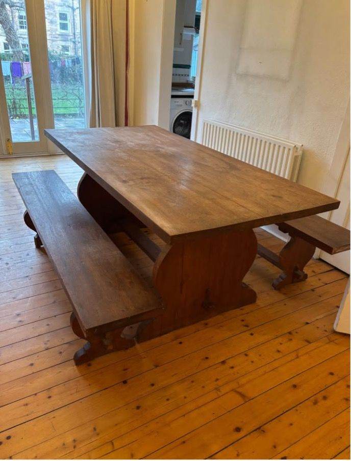 This is a solid and heavy dining table that could also be used as a large kitchen table.