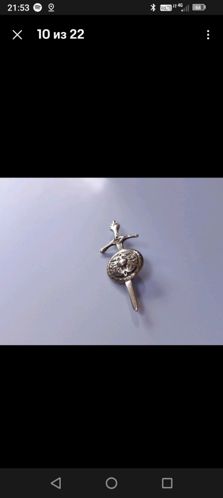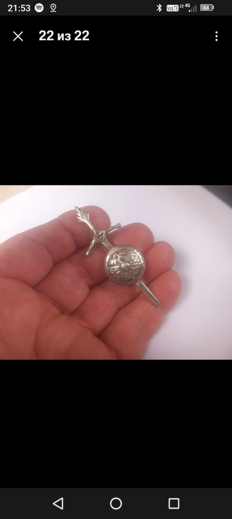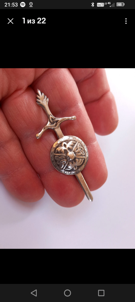 Antique Sterling Silver Scottish Sword And Shield With Celtic Motifs Brooch.