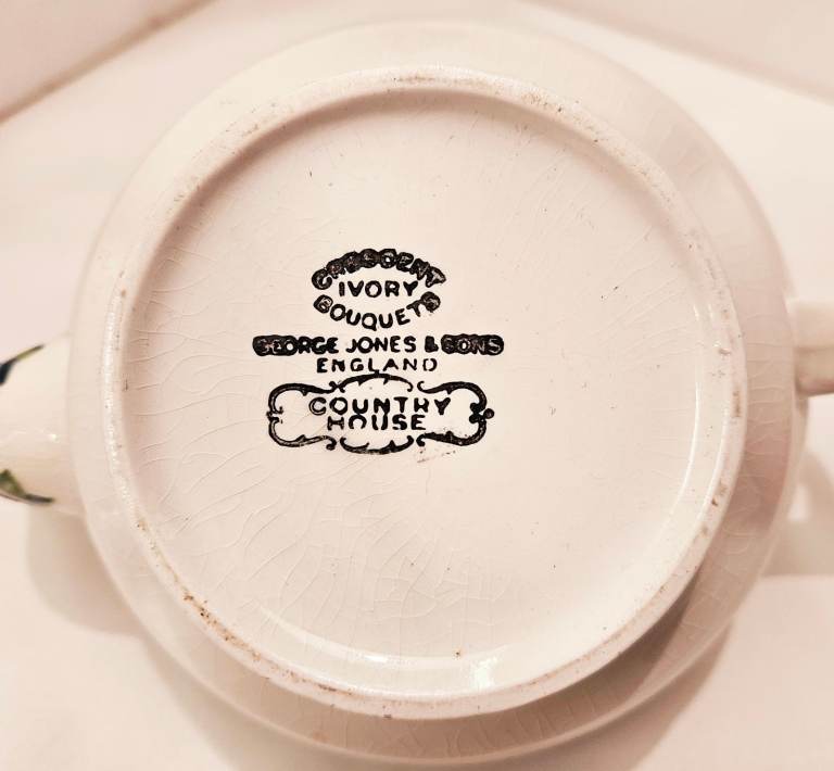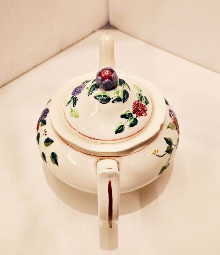 George Jones & Sons 'Ivory Bouquet' raised relief floral pattern teapot. Produced between 1907 - 1951 from the Crescent Potteries in Stoke - on - Trent.