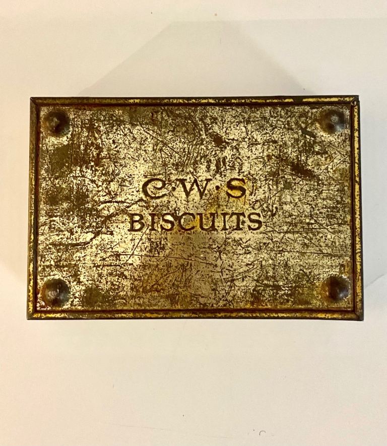 Vintage tin jewellery box CWS biscuits storage