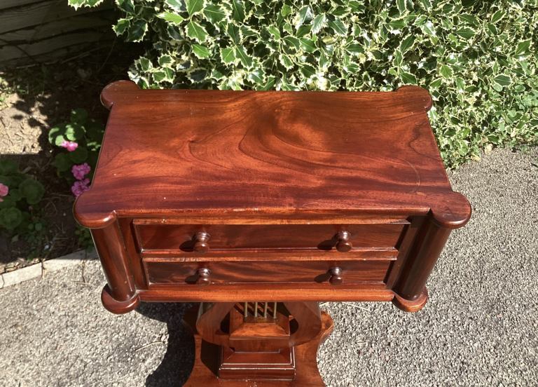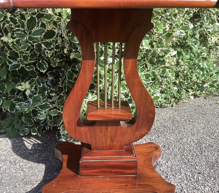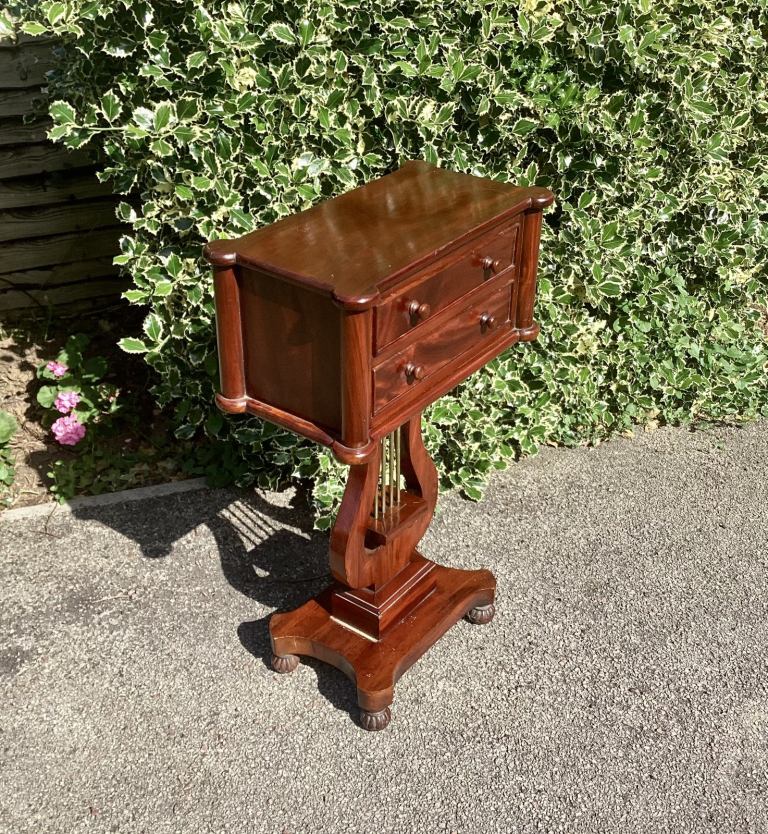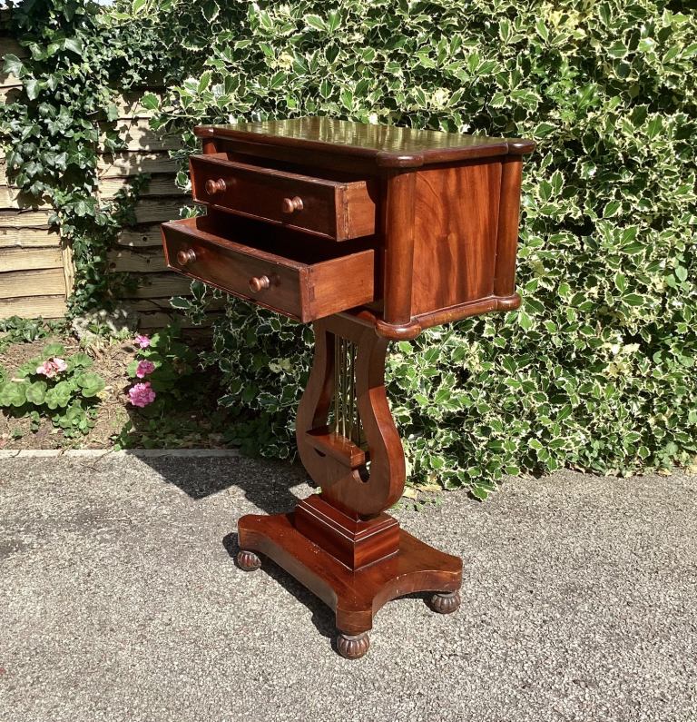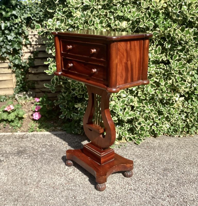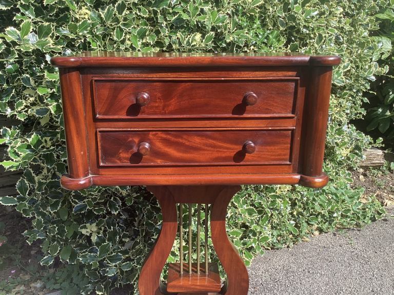 Antique Vintage Reproduction French Regency Style Harp Side Table with Two Drawers