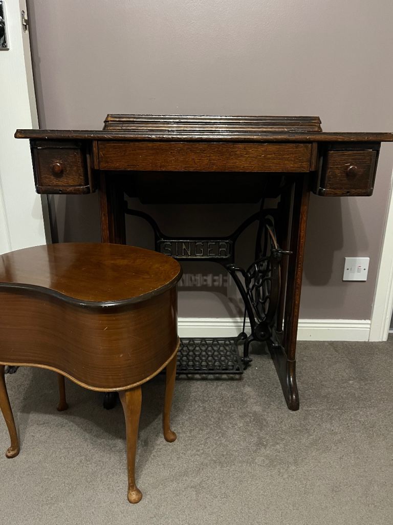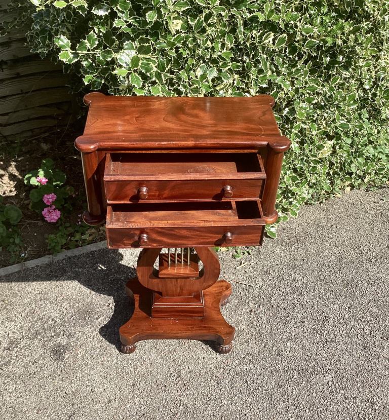 Antique Vintage French Regency Style Harp Side Table with Two Drawers