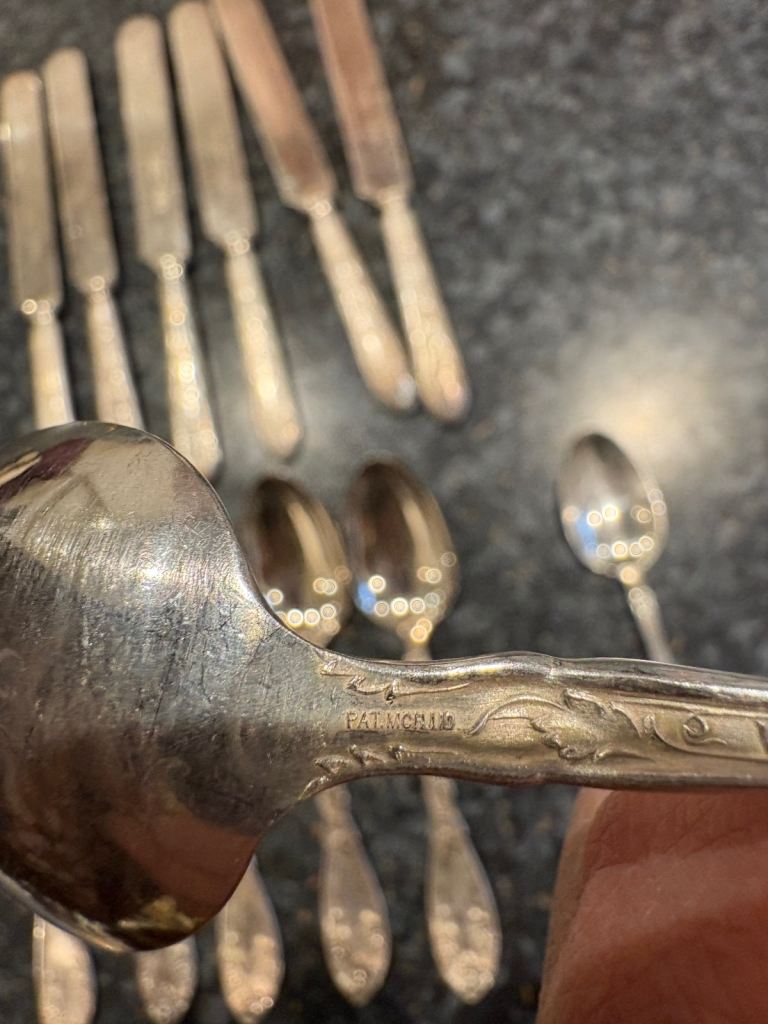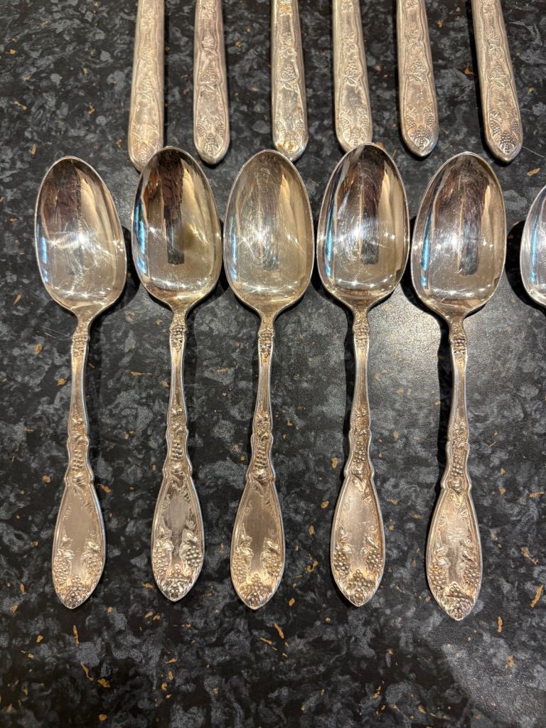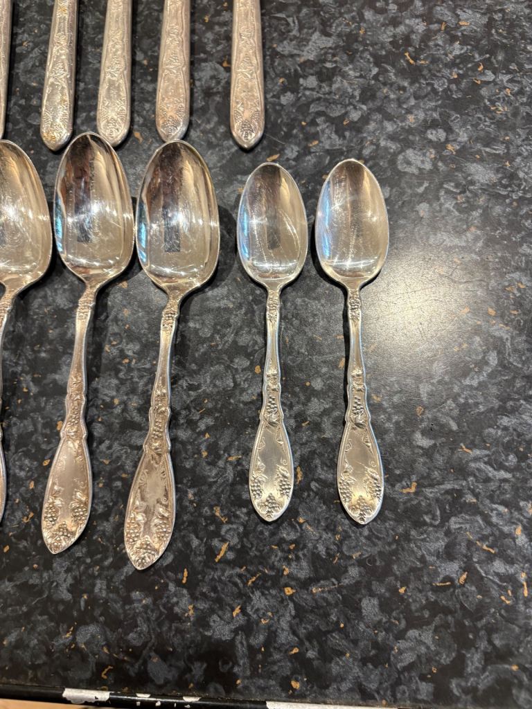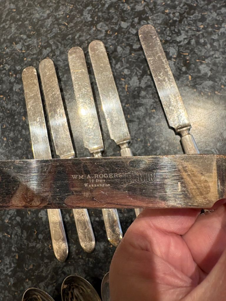 Antique / vintage Silver plated WM A Rogers spoons and table knives , used in good condition. (All of the items in the picture). Collection only please from NW6.