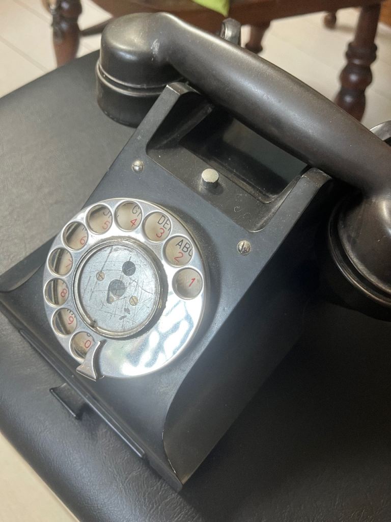 This vintage GPO Bakelite dial telephone from the 1950s is a charming piece of British telecommunications history. Made in the United Kingdom, this black rotary telephone exudes a retro charm that would make a stylish addition to any collector's display. With its classic design and functional dial (a bit stiff at the moment), this antique telephone is a nostalgic reminder of a bygone era in communication technology.