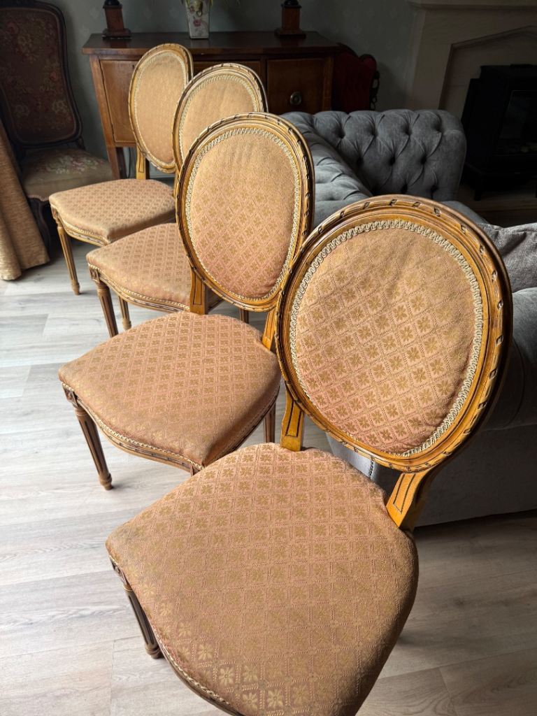 Beautiful Repro Vintage Antique Upholstered Carved Dining Chairs x6 (2xCarvers)