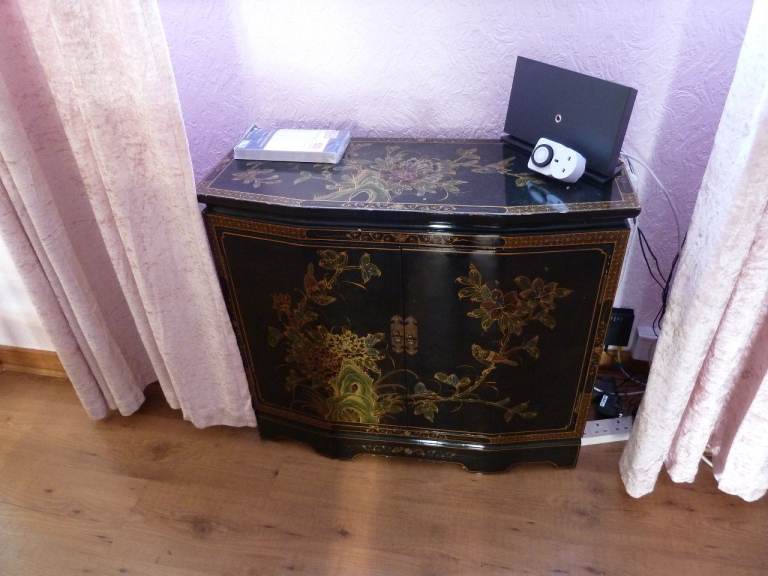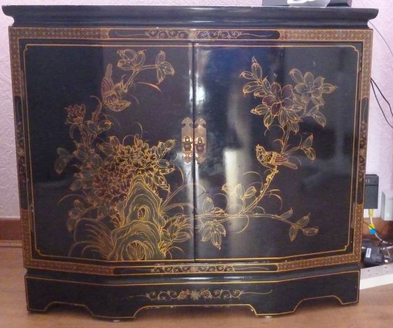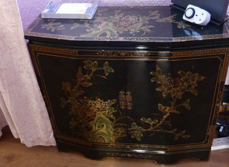 Chinese Black Lacquer Cabinet. Could Be Used For Drinks Etc ( NO TEXTS PLEASE )