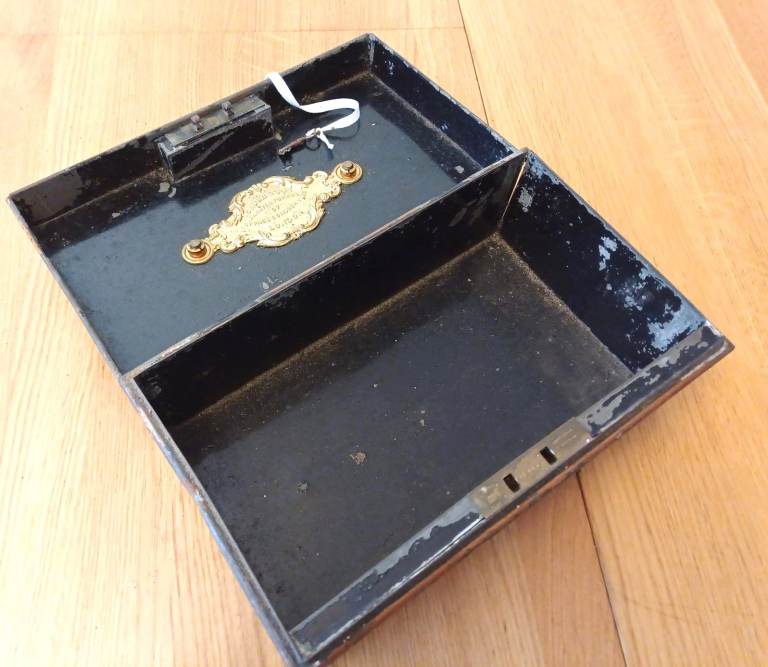 Chubb & Sons Antique Metal Cash Box | Rustic Industrial Storage - With Key - WILL POST