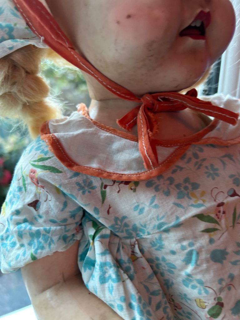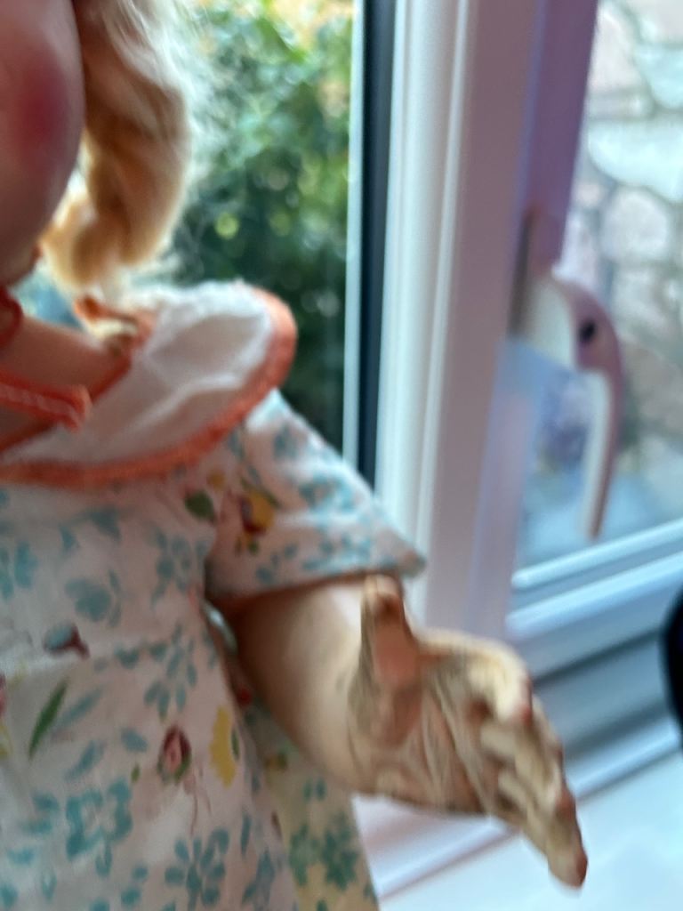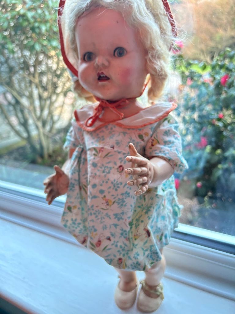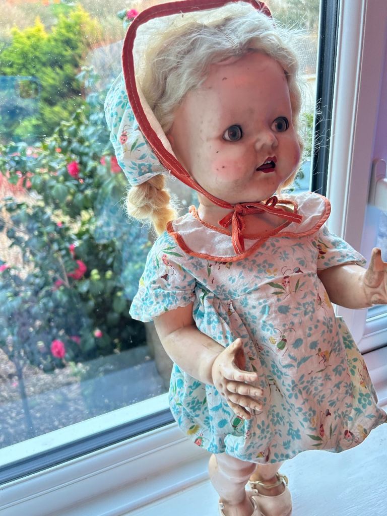 Walking doll from circa 1950 in pretty good shape for the age - she’s called Rosie as I think she’s a Rrosebud doll