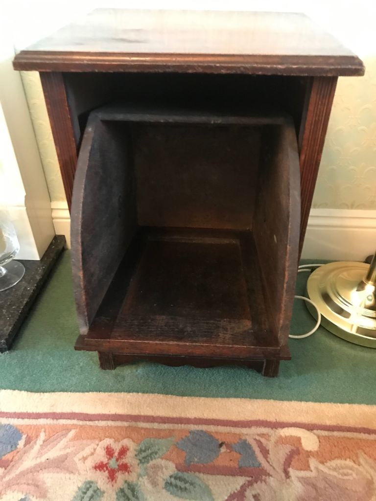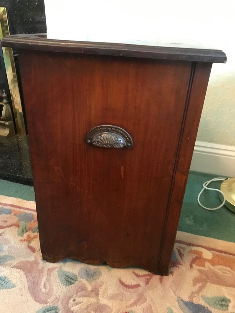 Edwardian mahogany coal shuttle with carved acanthus leaf panel to front.