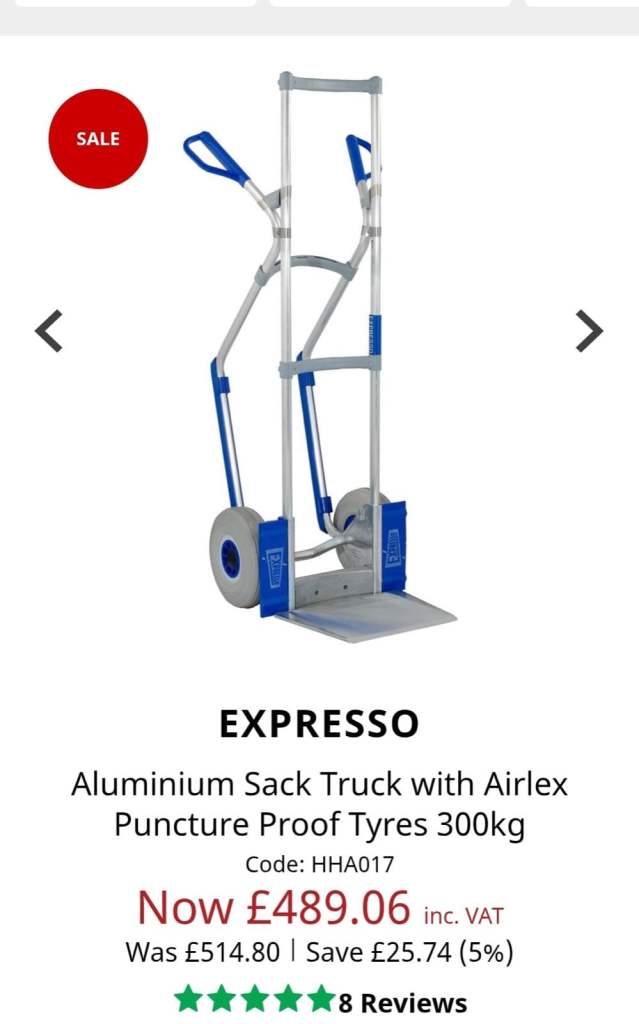 Expresso Aluminium Sack Truck with Airlex Puncture Proof Tyres 300kg