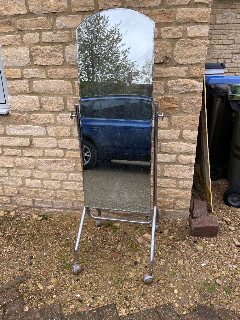 Full length, free standing antique dress mirror .suite any room ,fully adjustable and on wheels