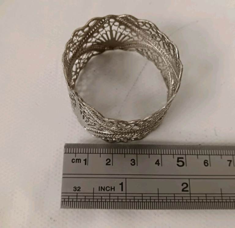 Pre-owned condition. The napkin rings are in good condition with some minor tarnishing visible. The box has slight wear on the exterior fabric. Please see all the photographs.