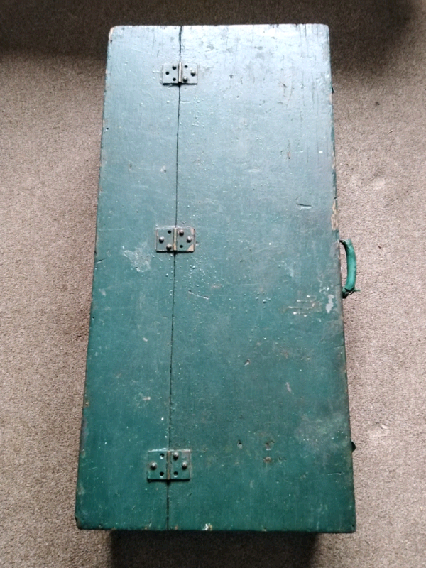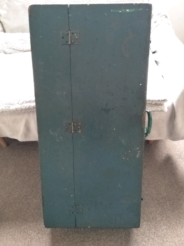 Military/Army green coloured scratch built carpenters tool chest. The box is made from pine. Genuine antique piece with great patina. Good for prop, storage, upcycling? Would look great on metal hairpin legs! Approx 86cm long, 41cm wide and 22cm deep. No WhatsApp messages please..I will not respond! £30