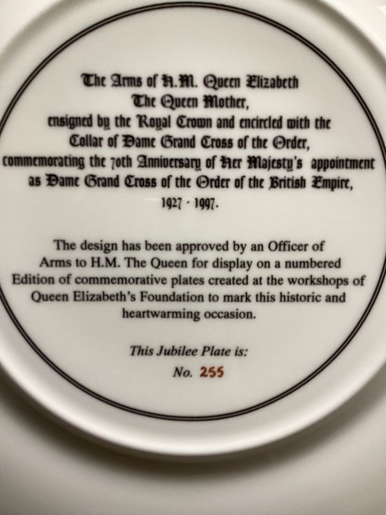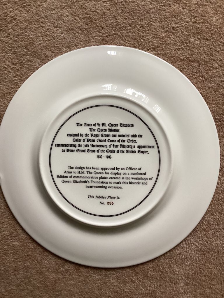 H.M Queen Elizabeth the Queen Mother Dame Grand Cross of the Order of the British Empire plate