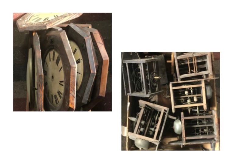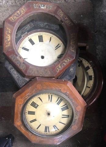 15 - 16 movements, dials & bezels for wag on the wall or Black Forest postman’s alarm clocks