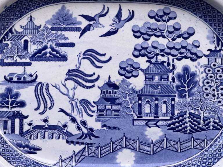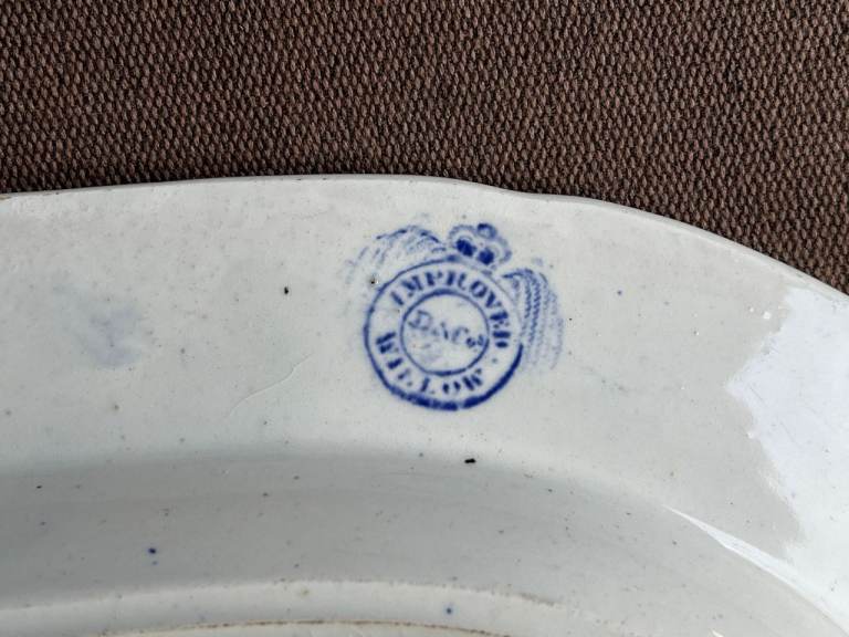 Large (16 inch) antique Swansea Dillwyn & Co pottery meat plate c1840, with transfer & impressed Swansea pottery makers' marks to the rear