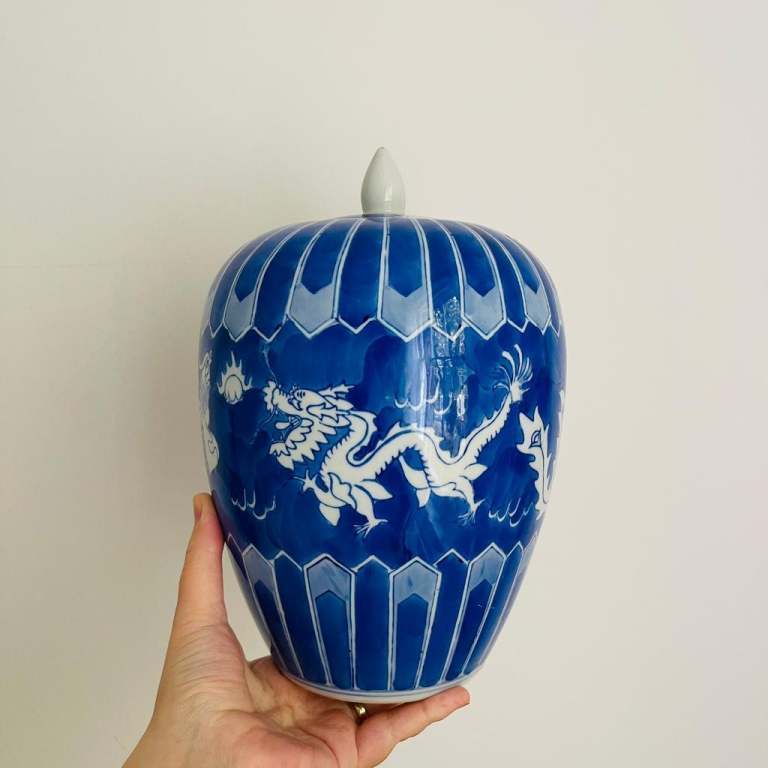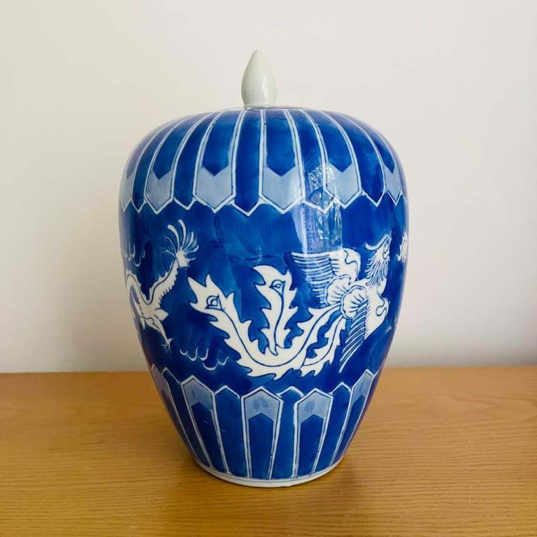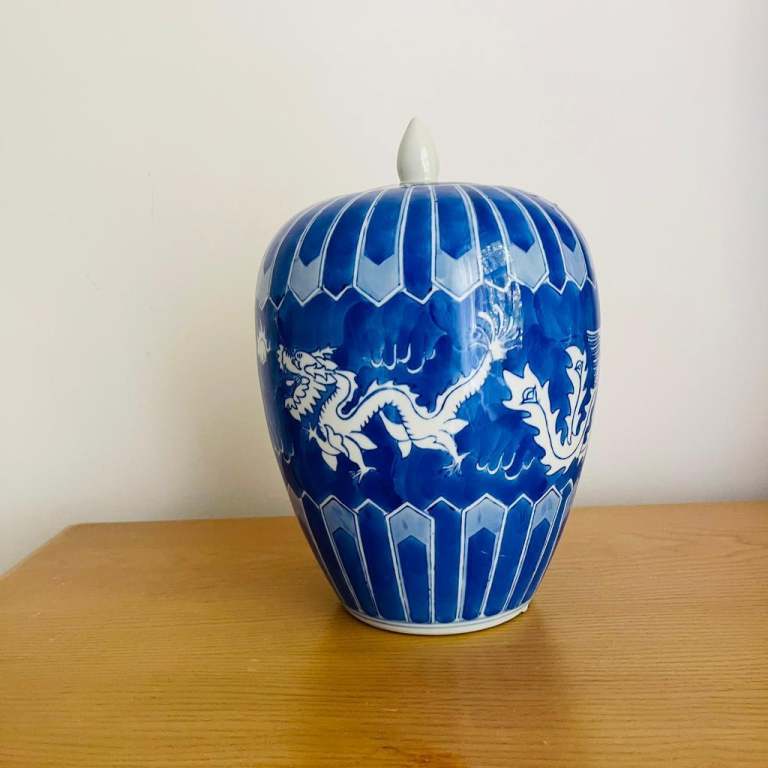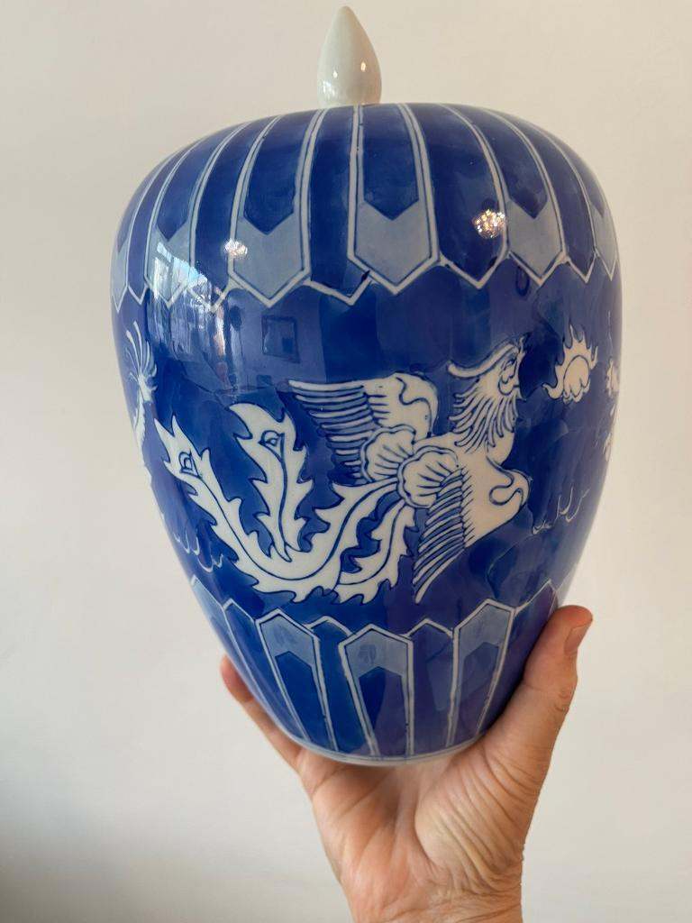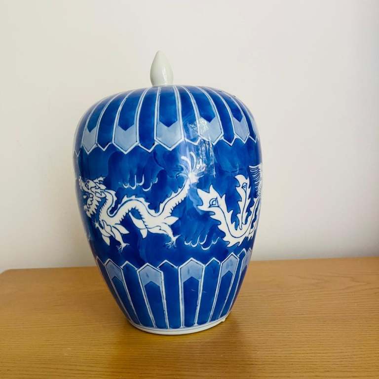 Large beautiful Chinese Porcelain blue decorated jar height 27cm only for collection.
