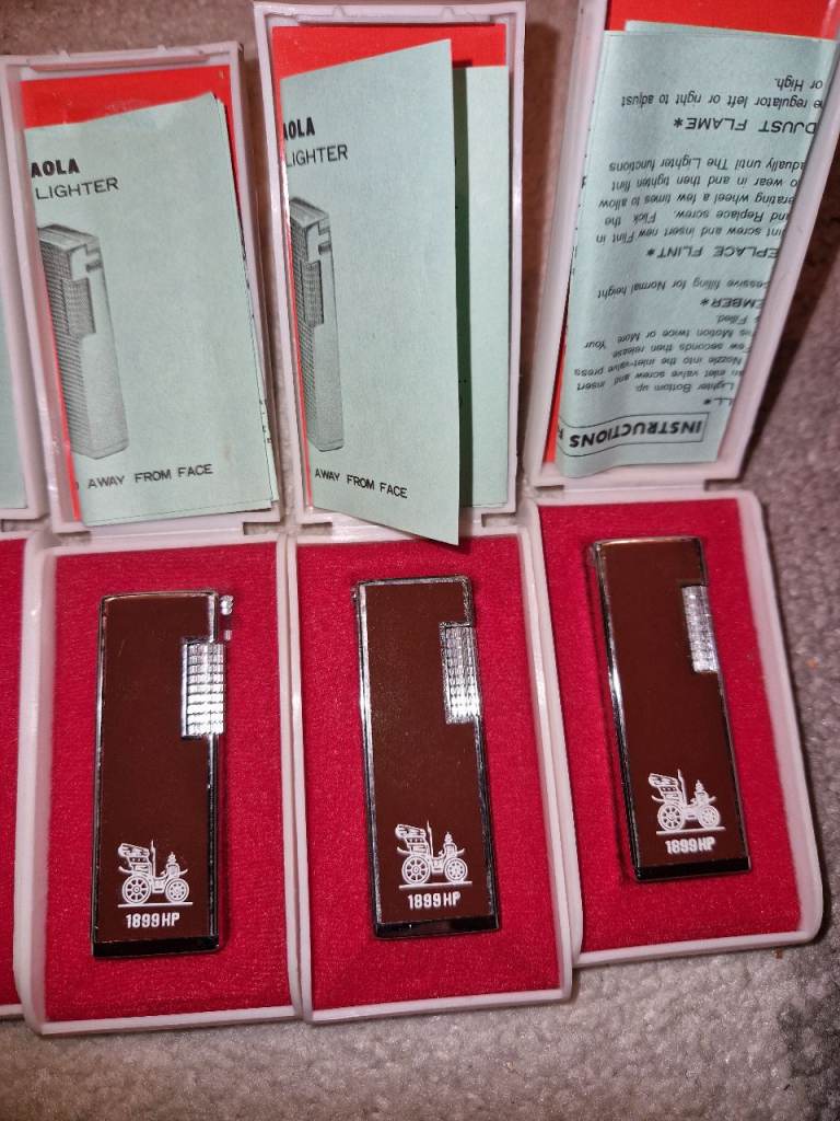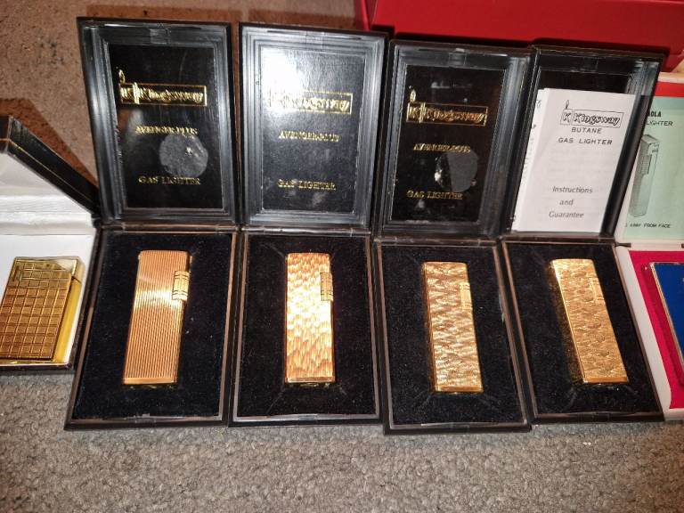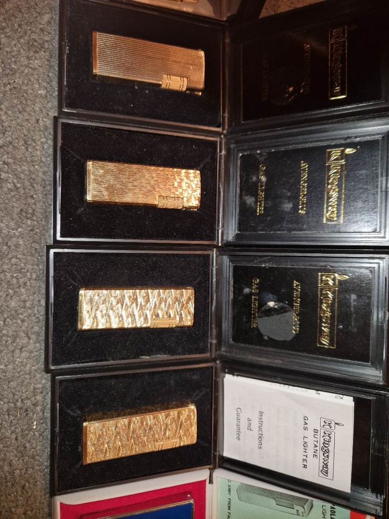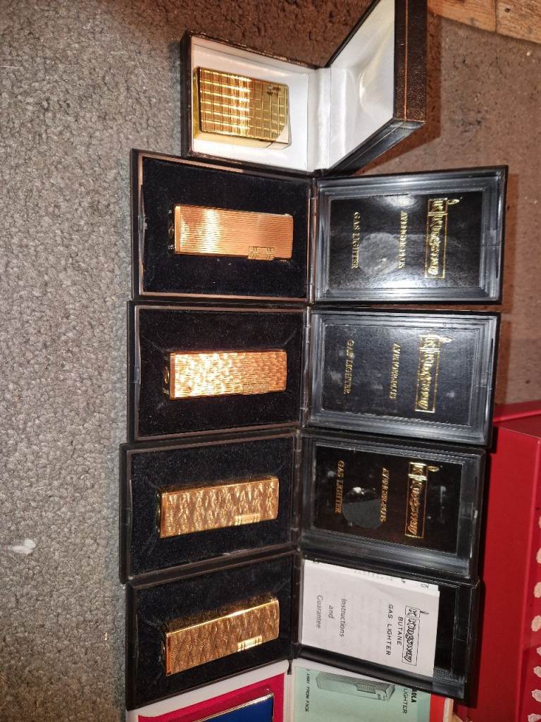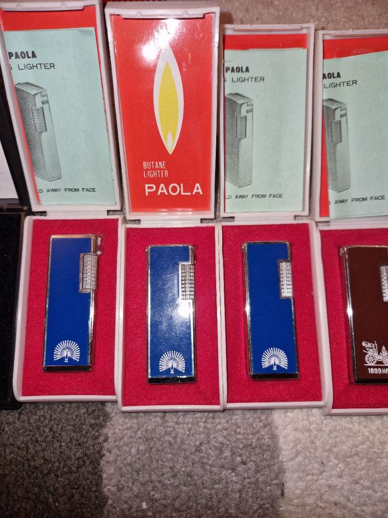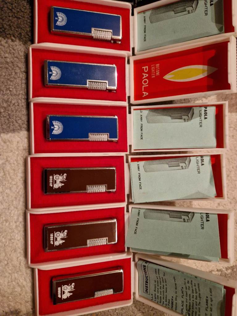 Here I have a collection of 11 vintage lighters all side flick lighters approximately from the 80s early 90s all brand new in boxes that my grandad had in his shop in Sheffield. Some will require flints due to being brand new only a couple of quid for a pack. No time wasters please as I work 6 days a week. £200 for the lot