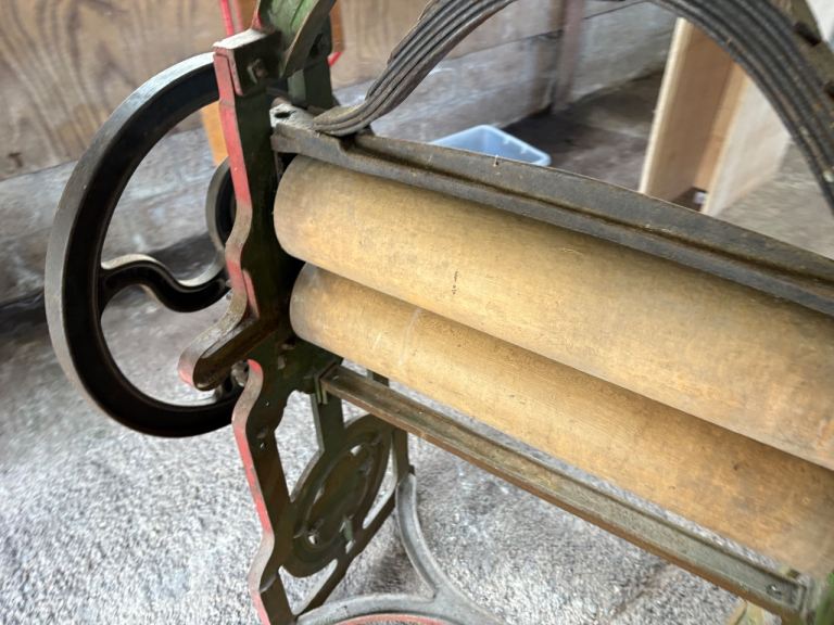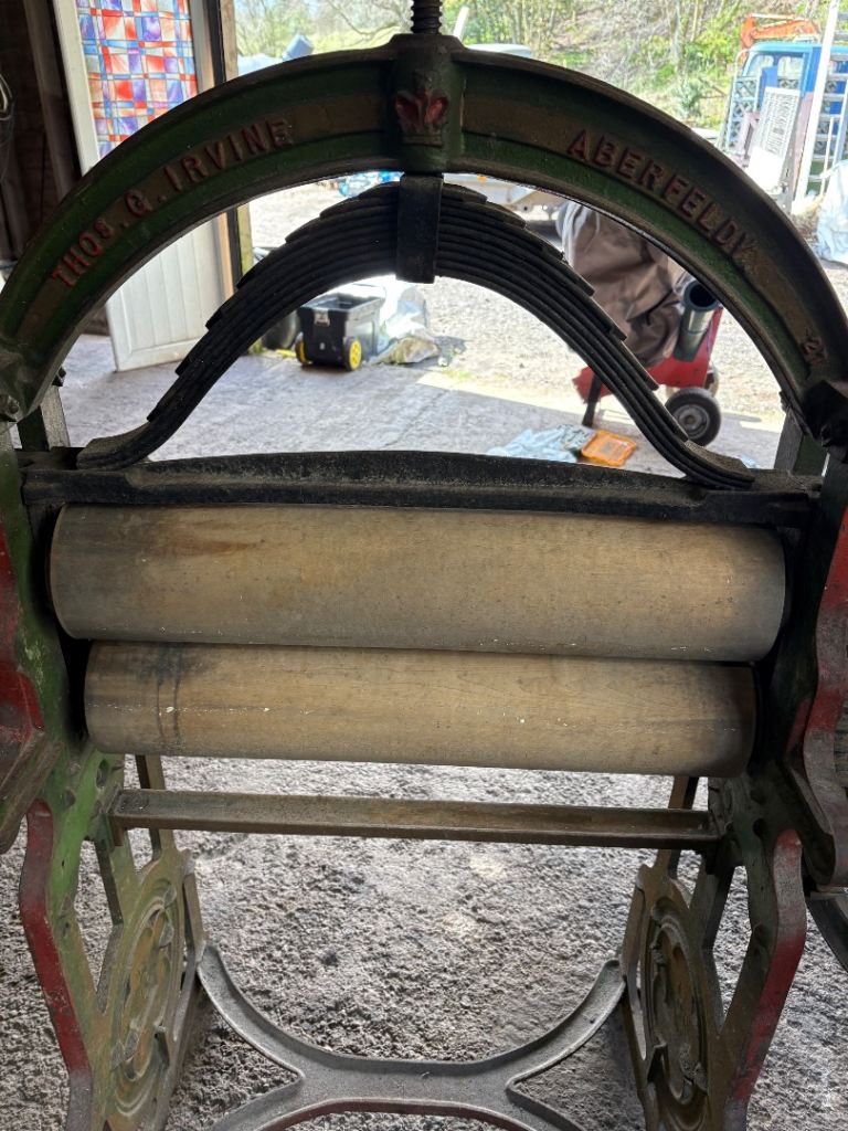 Mangle says Aberfeldy on it great condition works perfect red and green got a royal crest on it says new crown jewel mangle Thomas Thomas g Irvine Aberfeldy