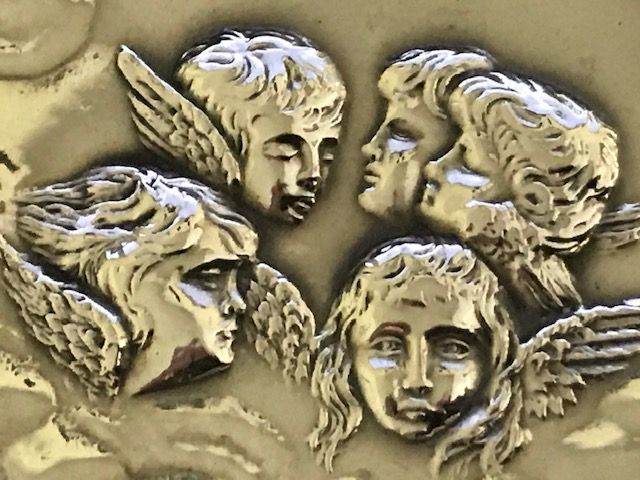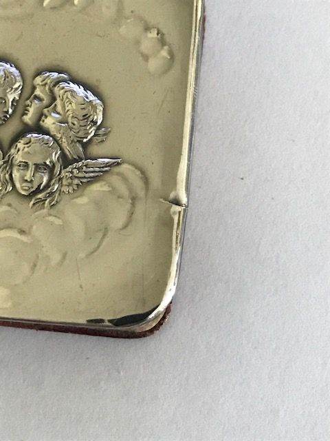 Solid silver front with embossed Reynolds Angels decoration in high relief
