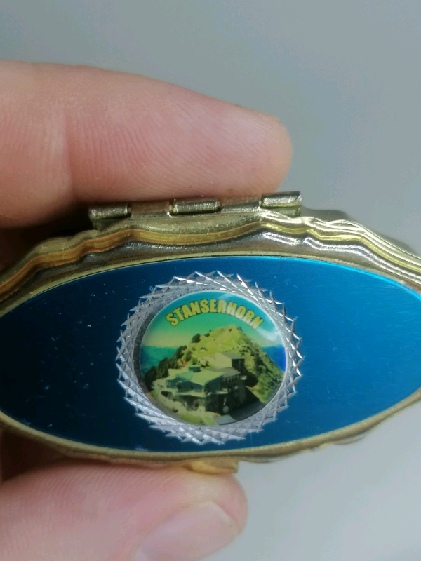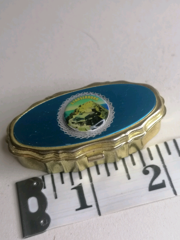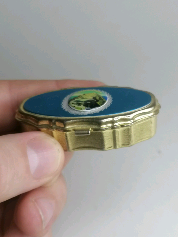 Vintage Miniature pills box( blue and gold color).