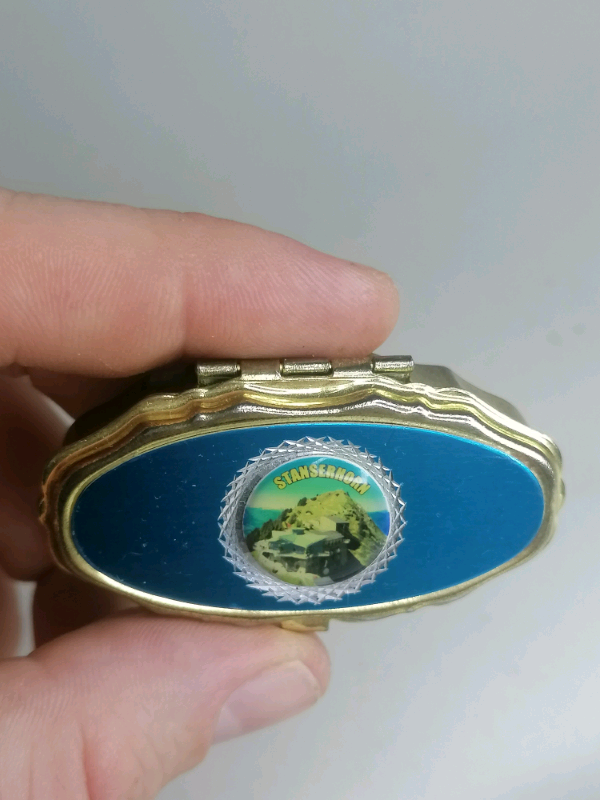 Miniature pills box( blue and gold color)