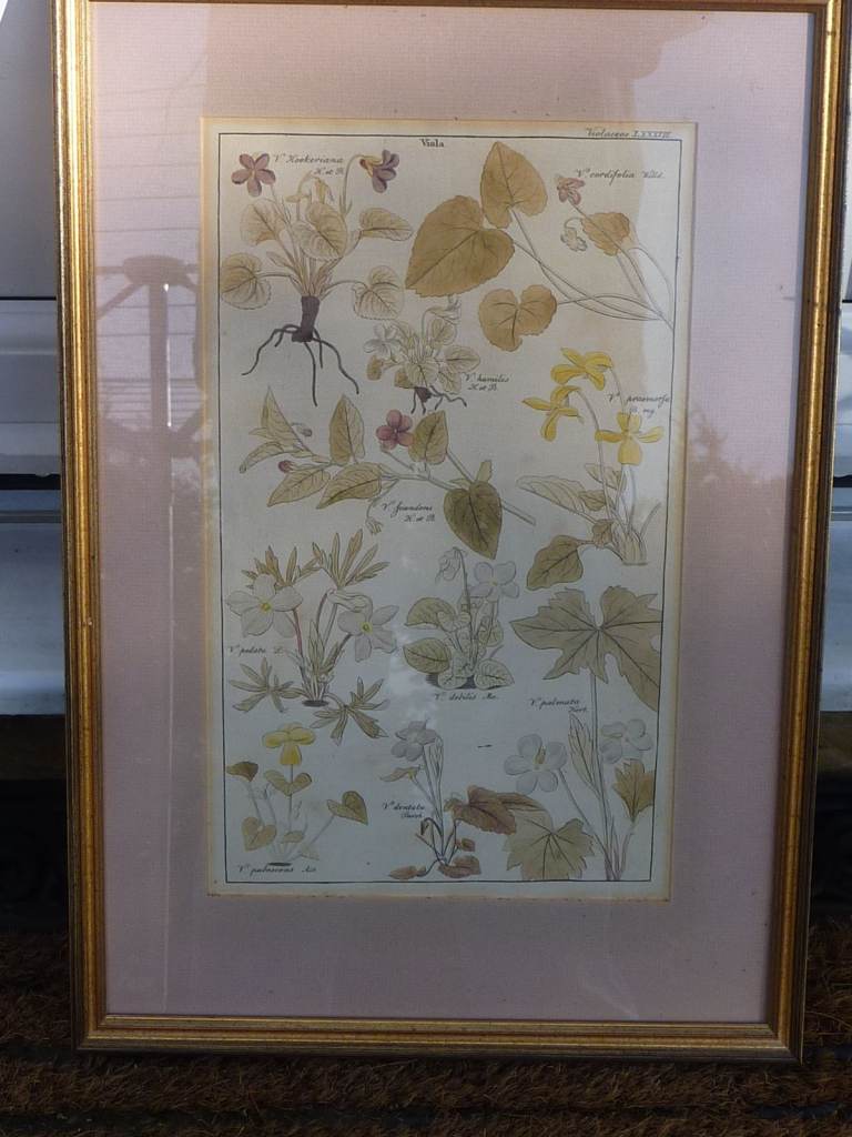 A gilt framed and glazed (later) near pair of 18th/19th century hand coloured botanical engravings.