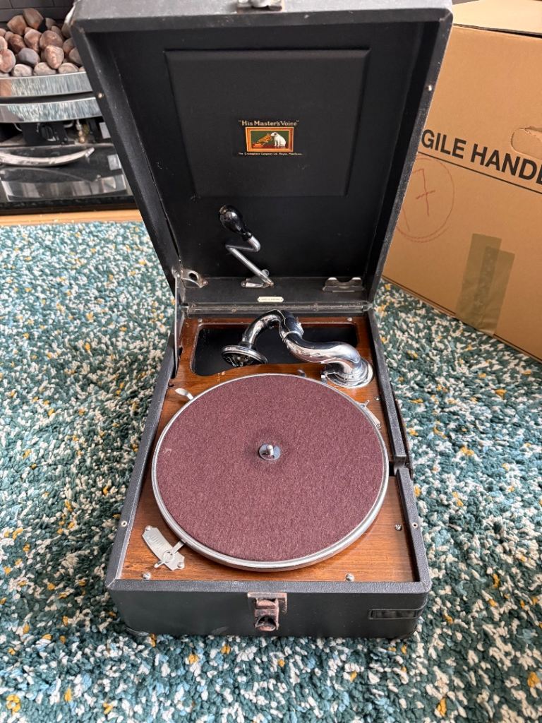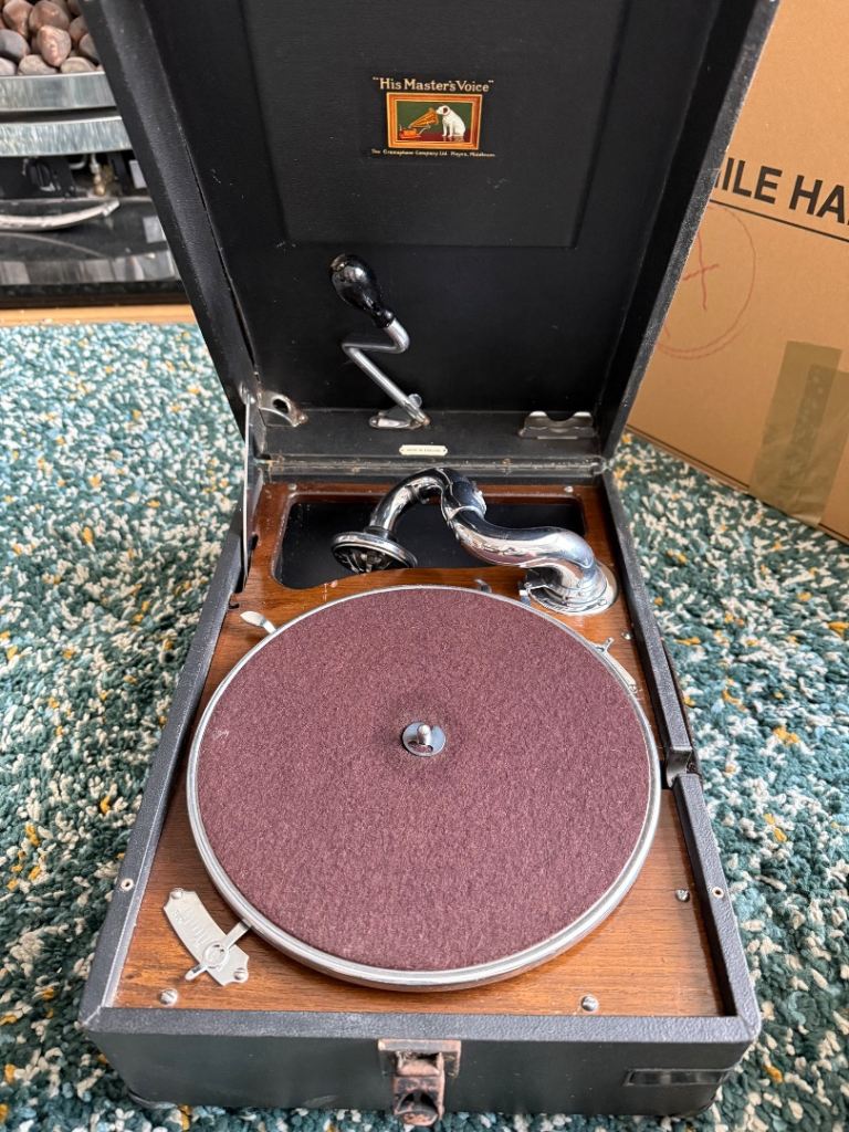 His Masters voice wind up portable record player