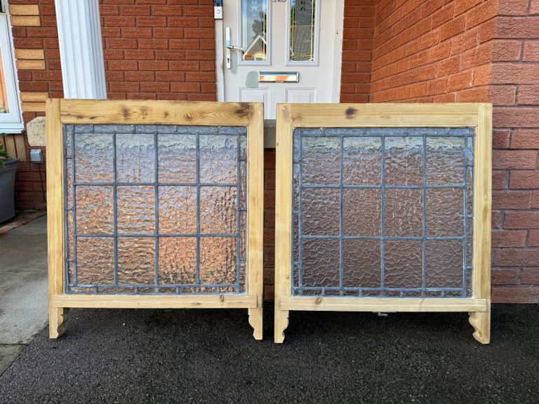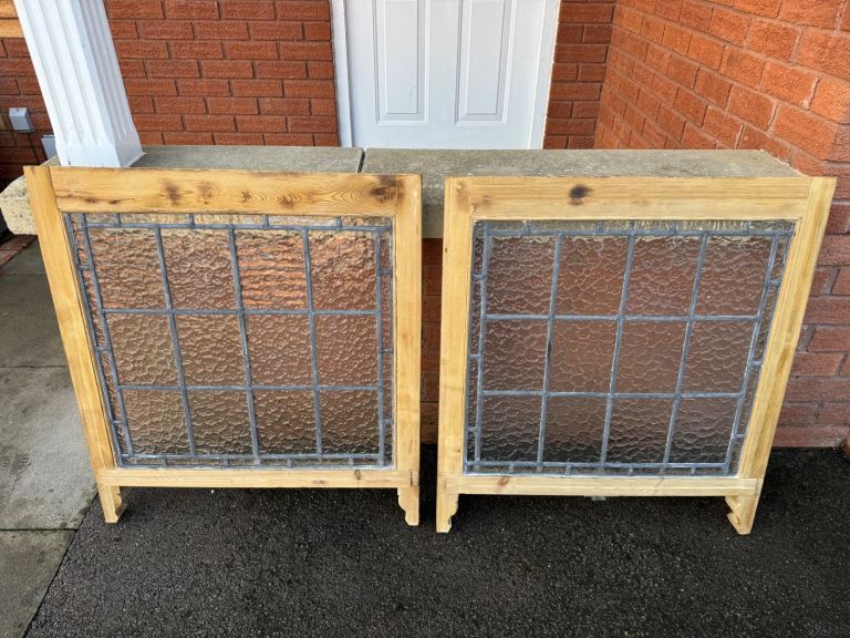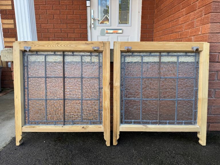 Pair of Antique Florentine Leaded Glass Sash Windows Stripped ready for the finish of your choice