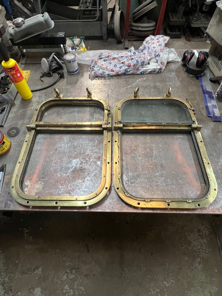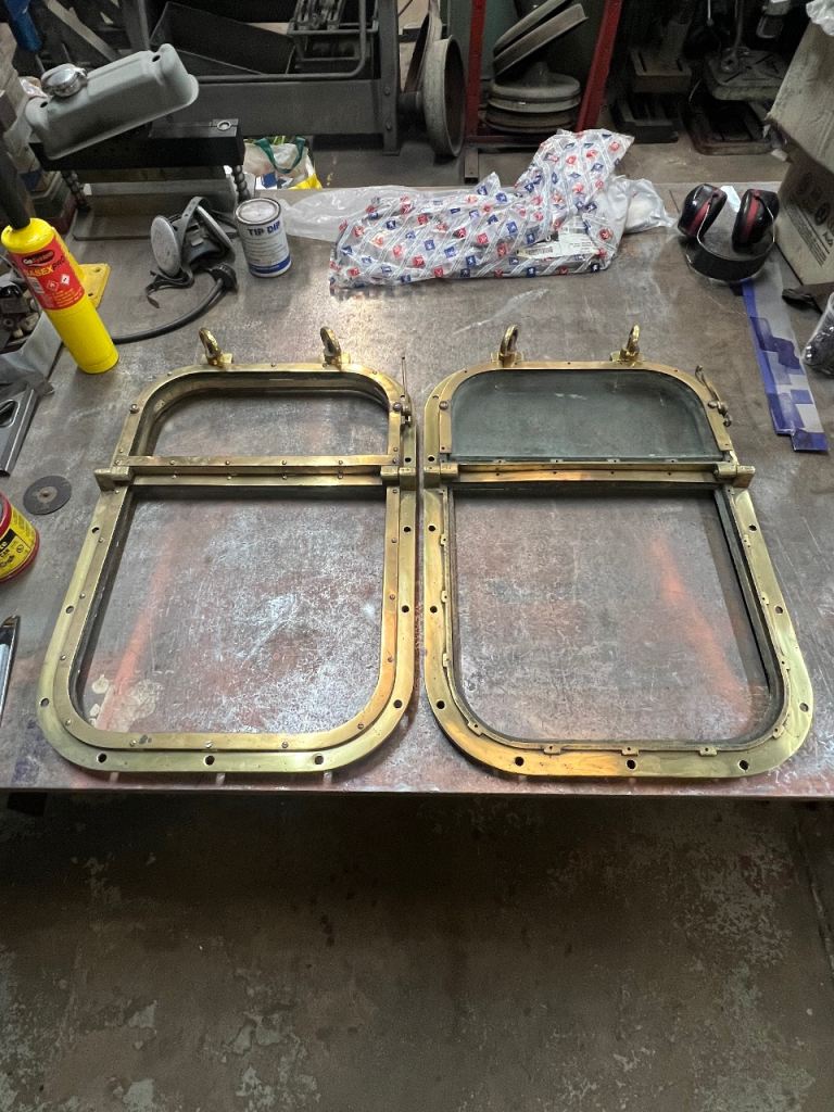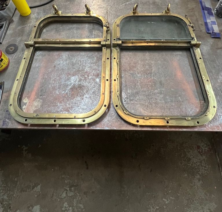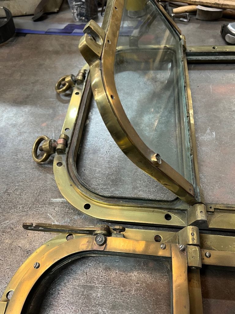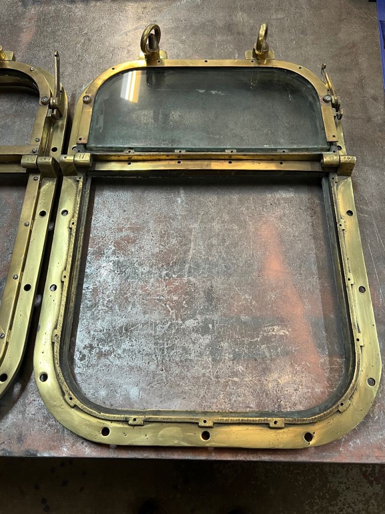 Posting for 2+ monthsPair Vintage Brass Ships Bridge Windows Porthole Maritime