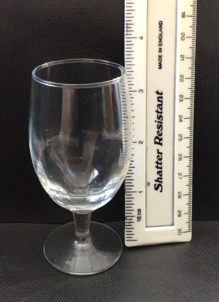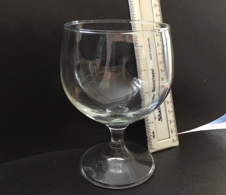 1. Large - vintage with large bowl, short stem, folded over foot/base edge. 12cm tall, 8cm across the top.