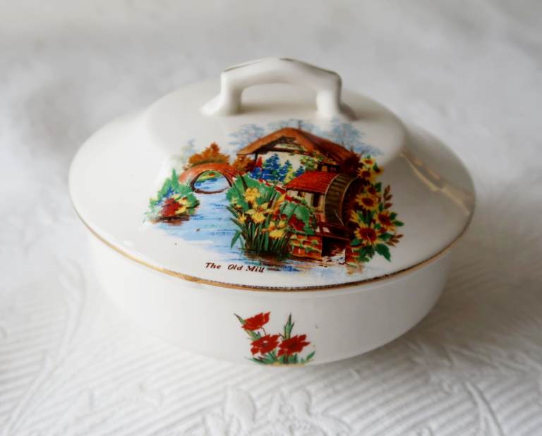 Rare Vintage Falcon Ware “The Old Mill” Wash Stand Set - genuine 1940s