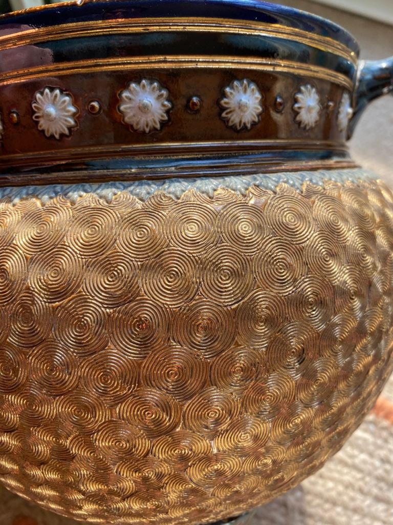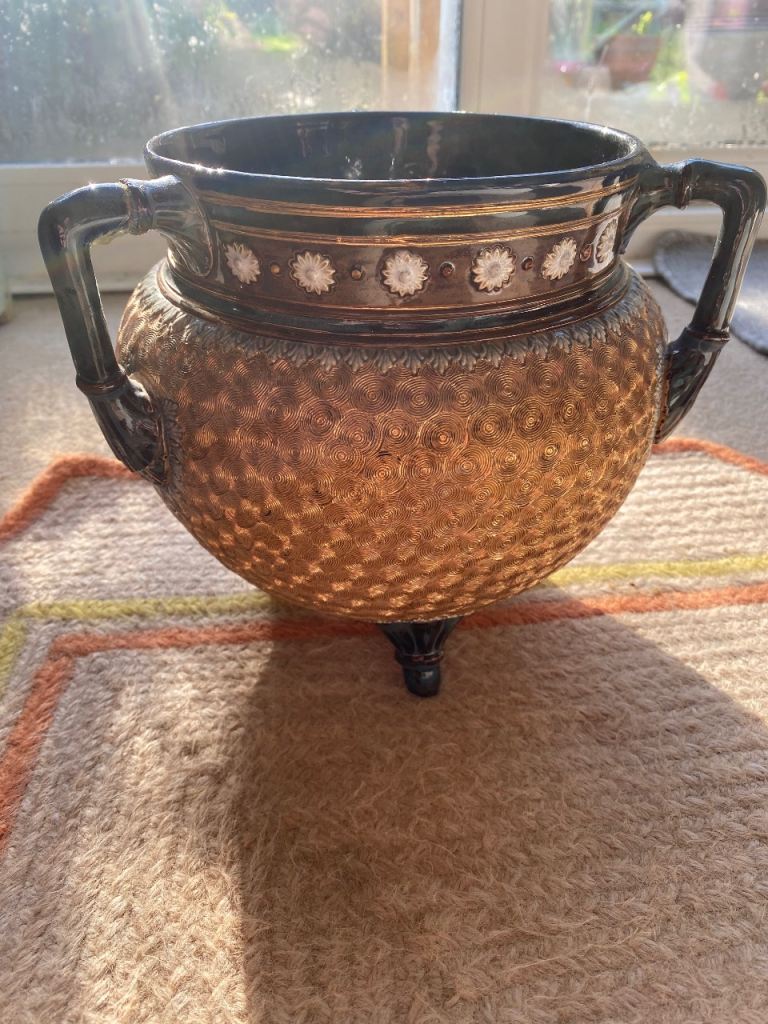 An antique Royal Doulton Three Legged Blue & Gold Pot for sale.