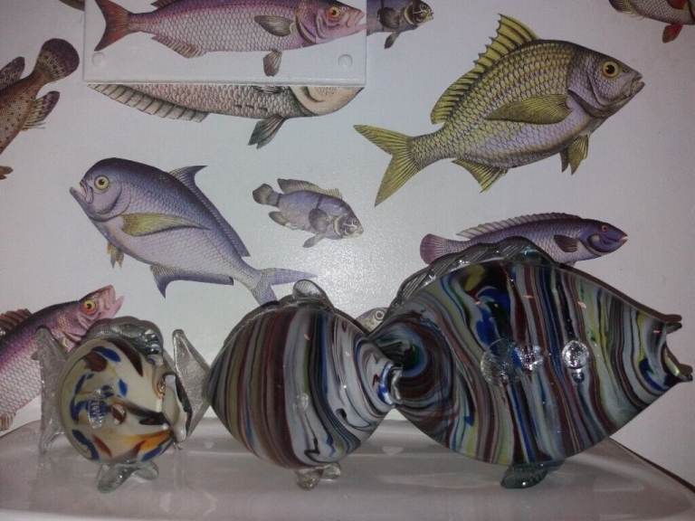 Set of 3 murano glass art deco fish . All in perfect condition no chips or cracks .