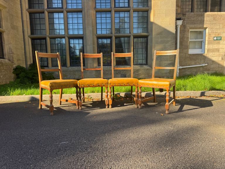A charming set of 4 antique dining chairs, recovered from Hollybush House in Ayr – a beautiful historic home.