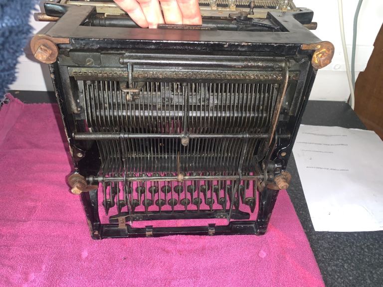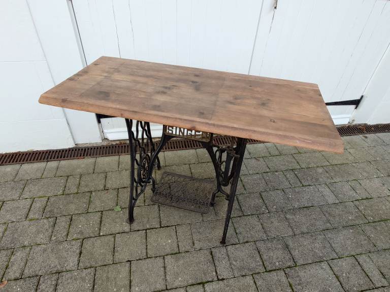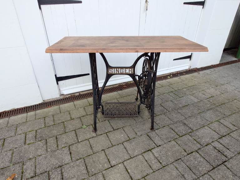 Original Singer Sewing Table. A lovely period piece which would look stunning in any vintage decor home. The table is fitted with a solid wood top with bevelled finish on the front and back. This could easily be cut to size if you needed the table to fit into a smaller recess. Current measurements :