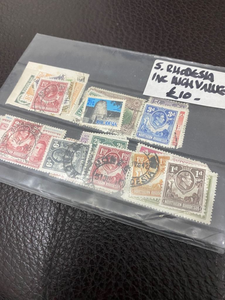 Small selection of stamps from Southern Rhodesia including high face value. Nice selection.