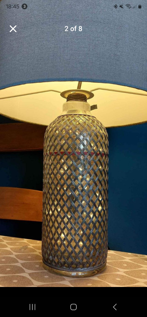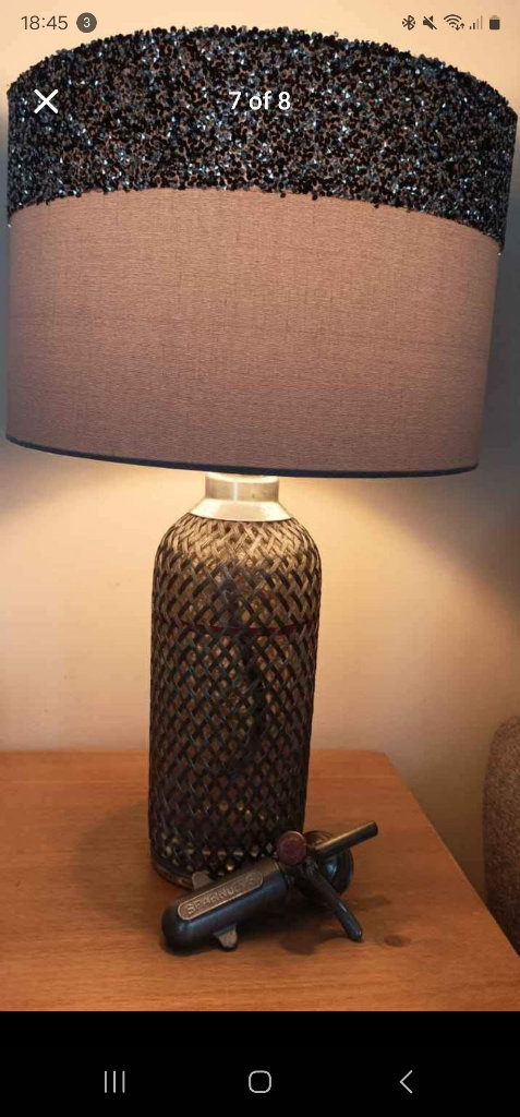 This has been converted into a table lamp with internal Led lights in the base with a remote and multi modes controller.