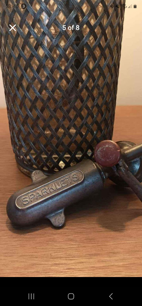 Here, we have a 1927 c type soda syphon bottle made by sparkles.