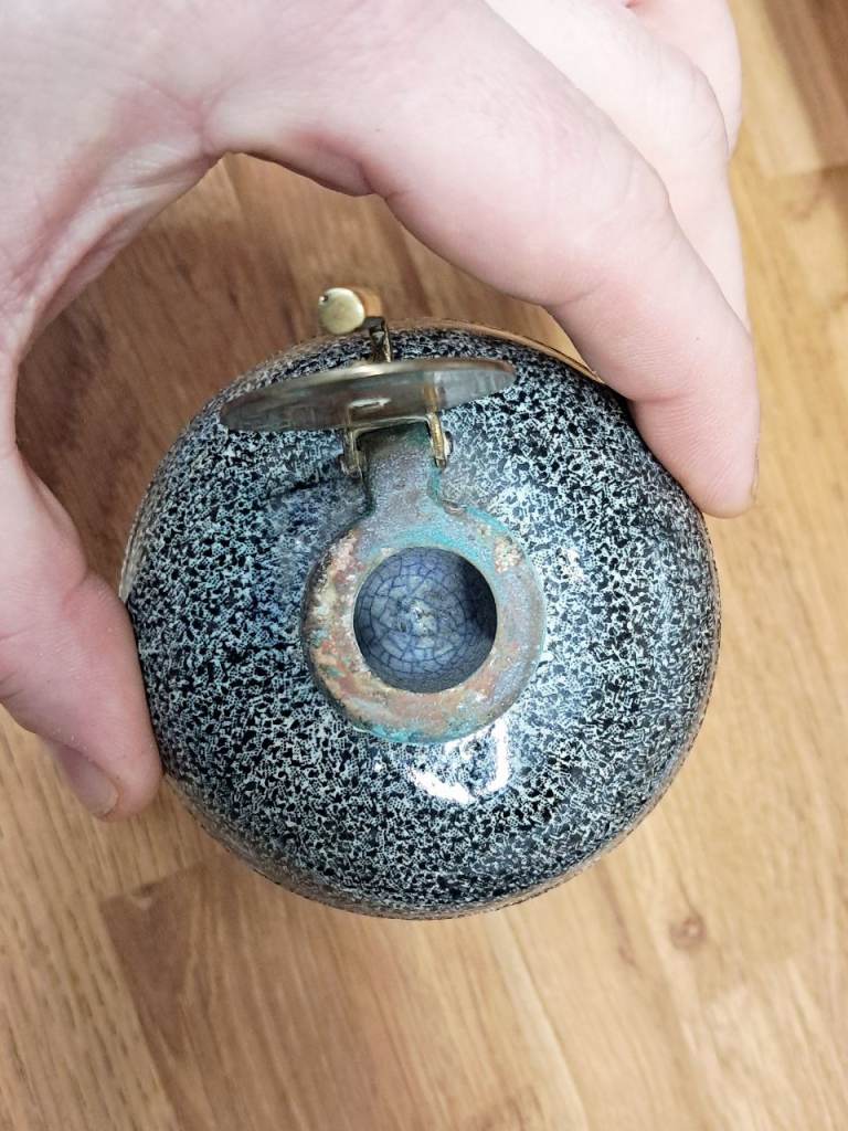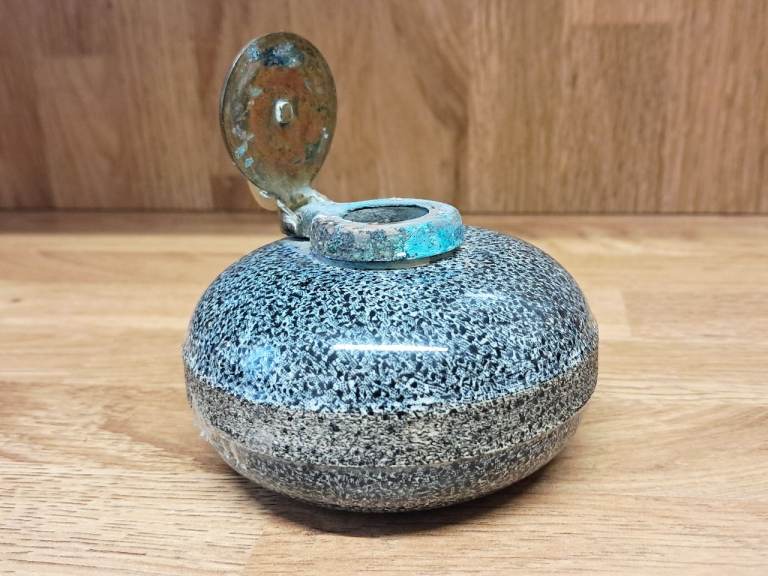 This is an Antique, miniature curling stone inkwell, dating from the late Victorian era. AS SEEN