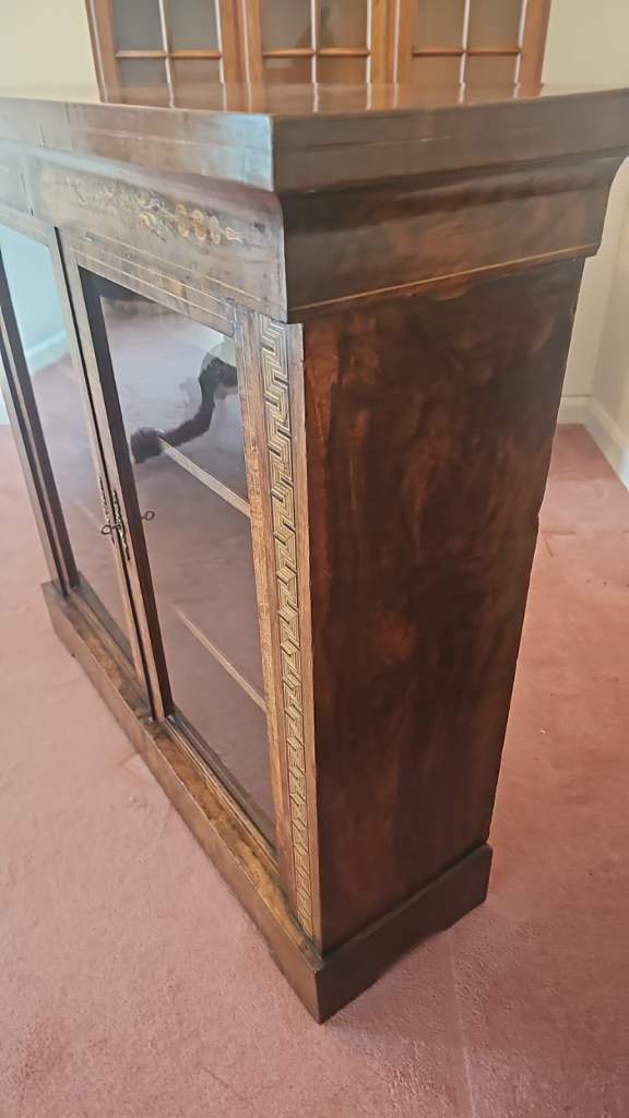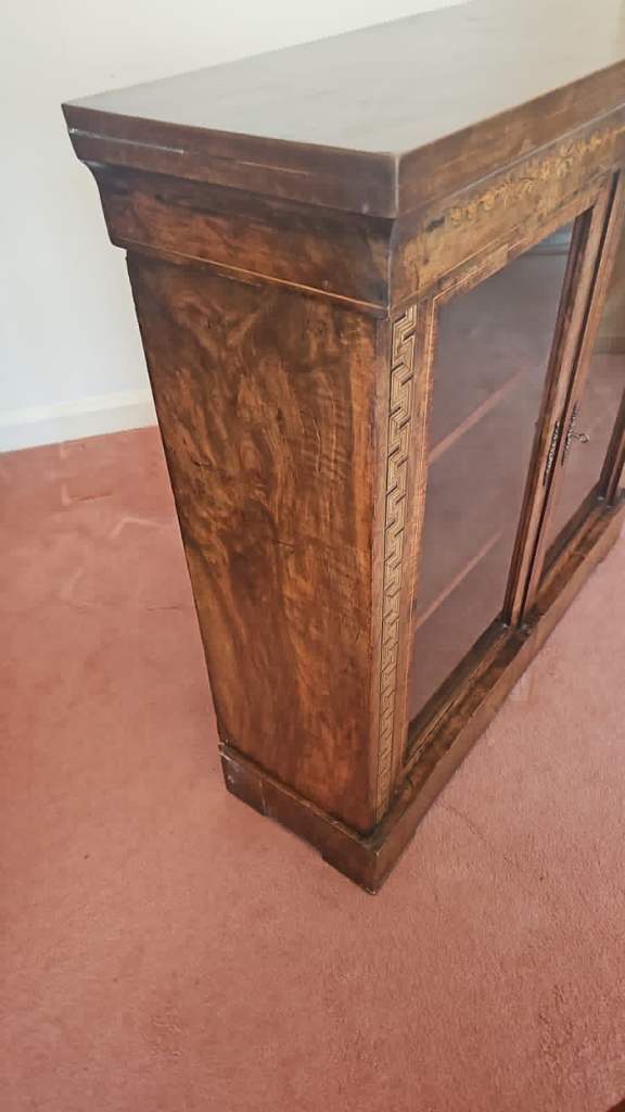 Victorian inlaid burr walnut display cabinet