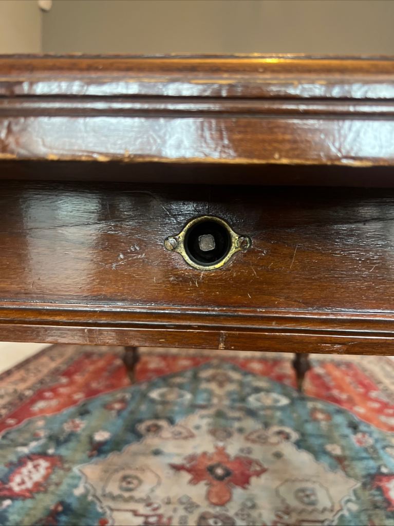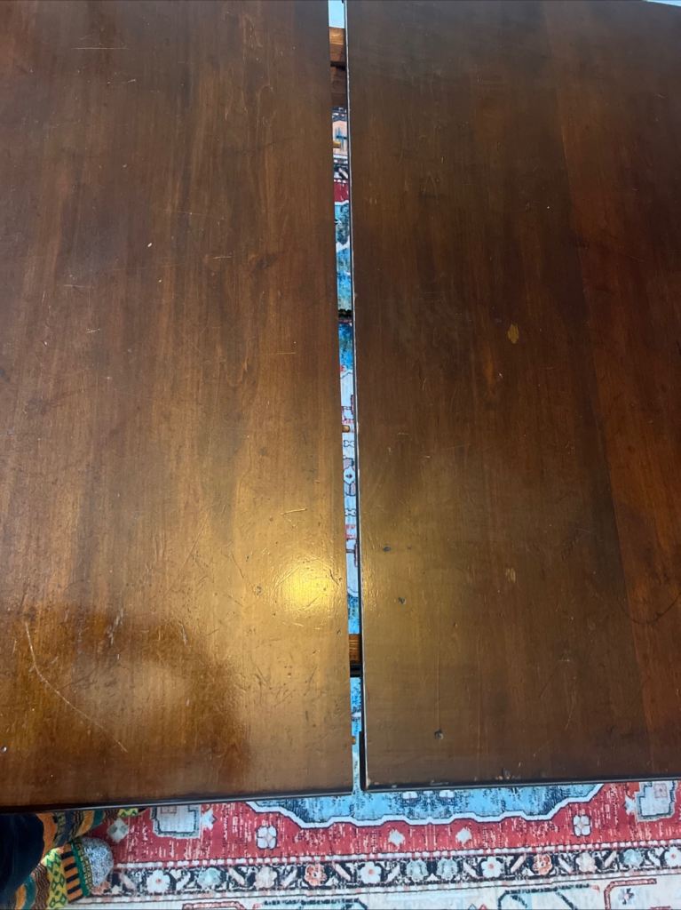 Please don’t expect a perfect table, this is old and used! Scratches and a few dents.