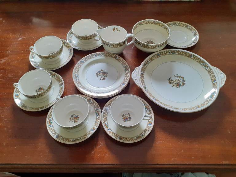 Vintage 1930s Johnson Bros Pareek 18 piece Tea Set with jug & sugar bowl