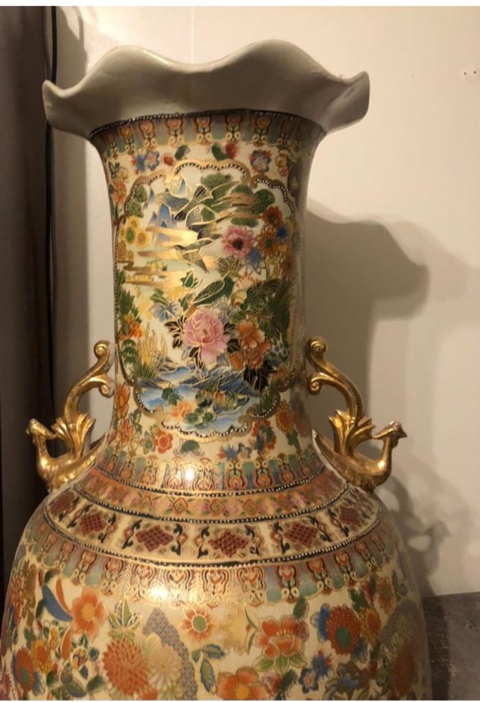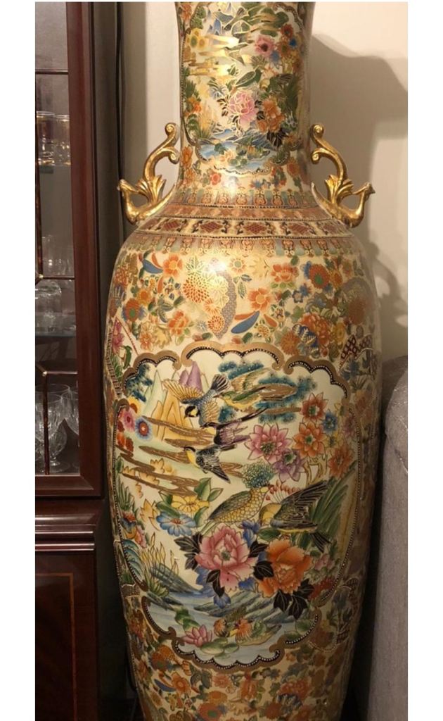 Offered for sale is a beautiful showcase vase – this adds to its authentic vintage charm. It remains structurally in one piece perfectly . A splendid addition to your large living room. Very Large unique Chinese vase (ornament or furniture) 5ft tall approximately, very good condition, no cracks or damage. Reasonable offers only.