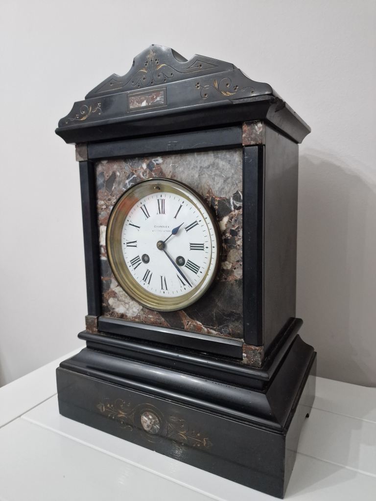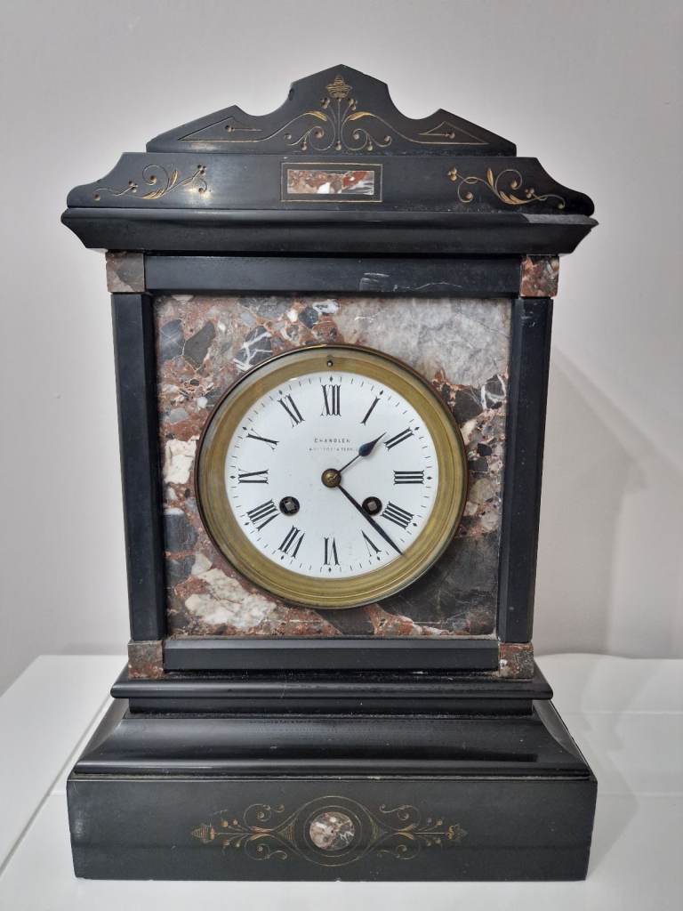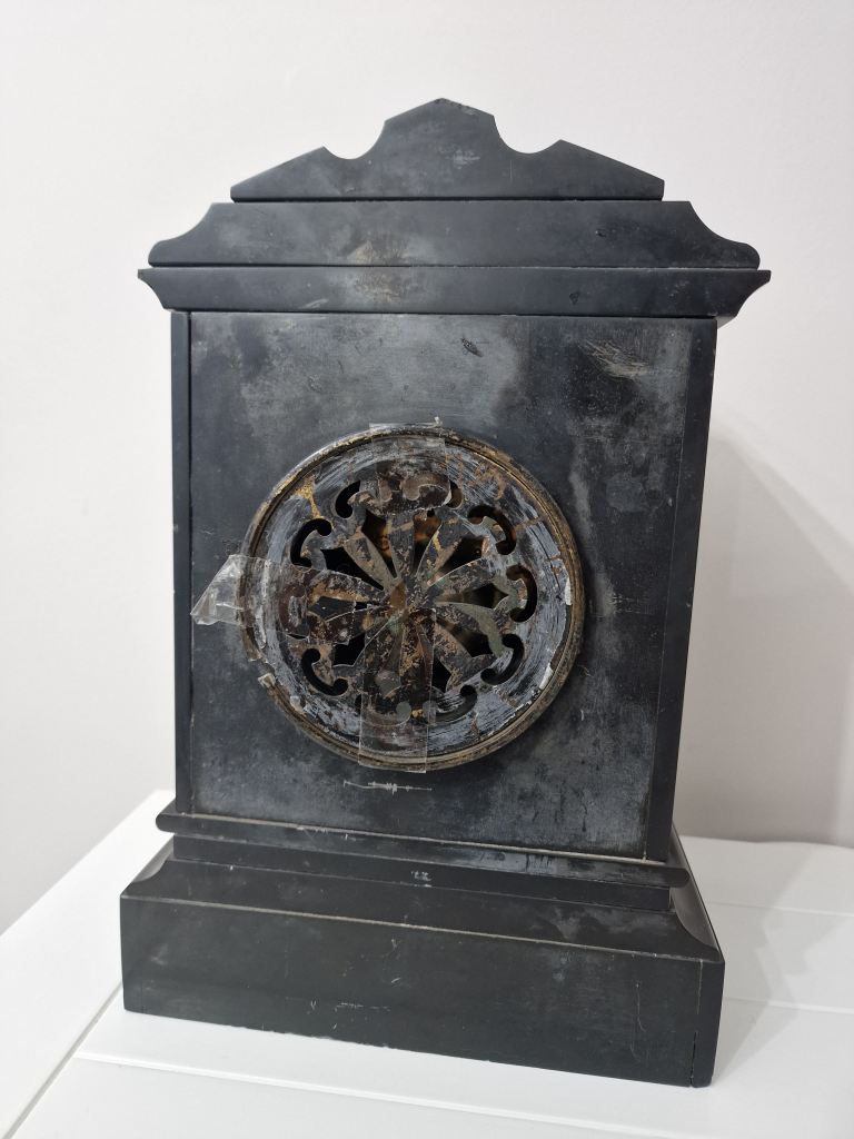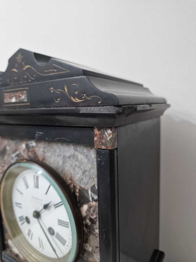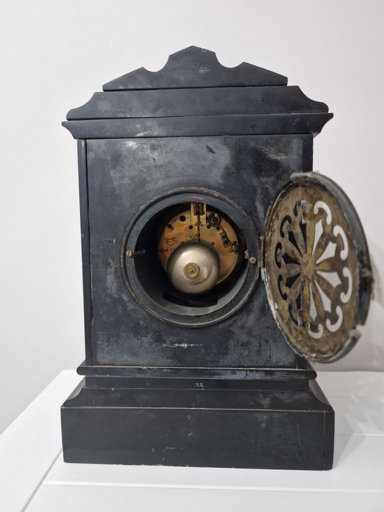 Vintage Antique 1900s Black Very Heavy Marble Mantle Clock