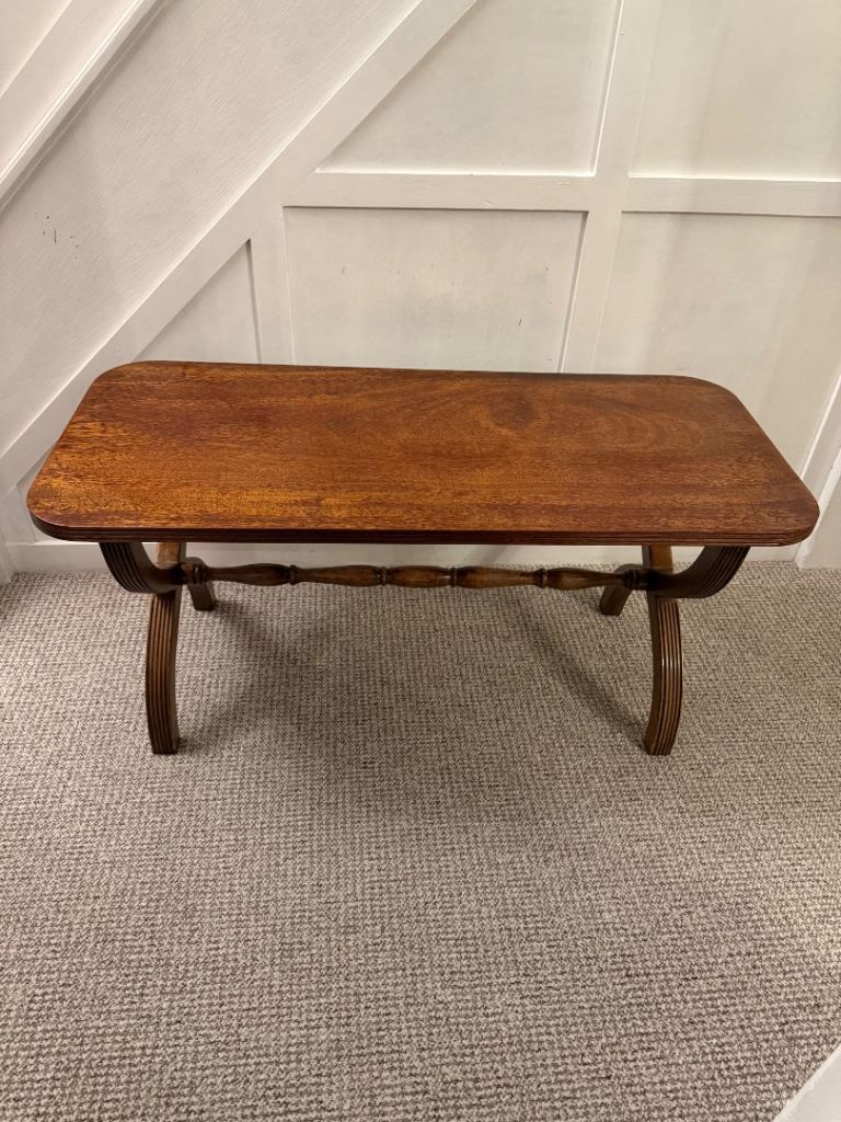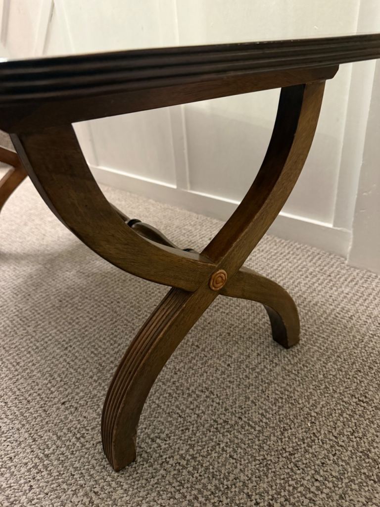 Vintage art deco flame mahogany X-frame coffee table