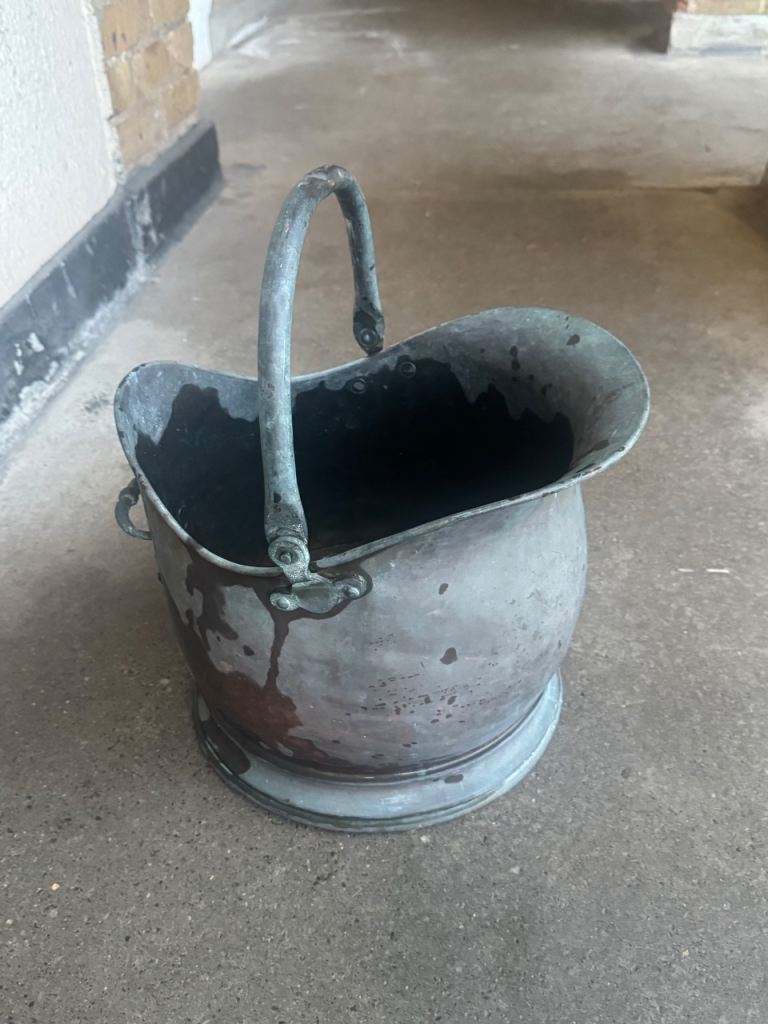 Vintage brass fireplace fender / fireside set. Decorative traditional design with hammered finish and ornate detailing. Solid and well-made, showing age related patina and heat marks consistent with use. Ideal for restoration or as a statement fireside feature.