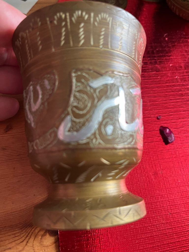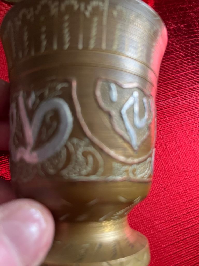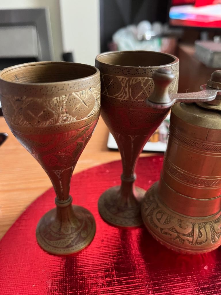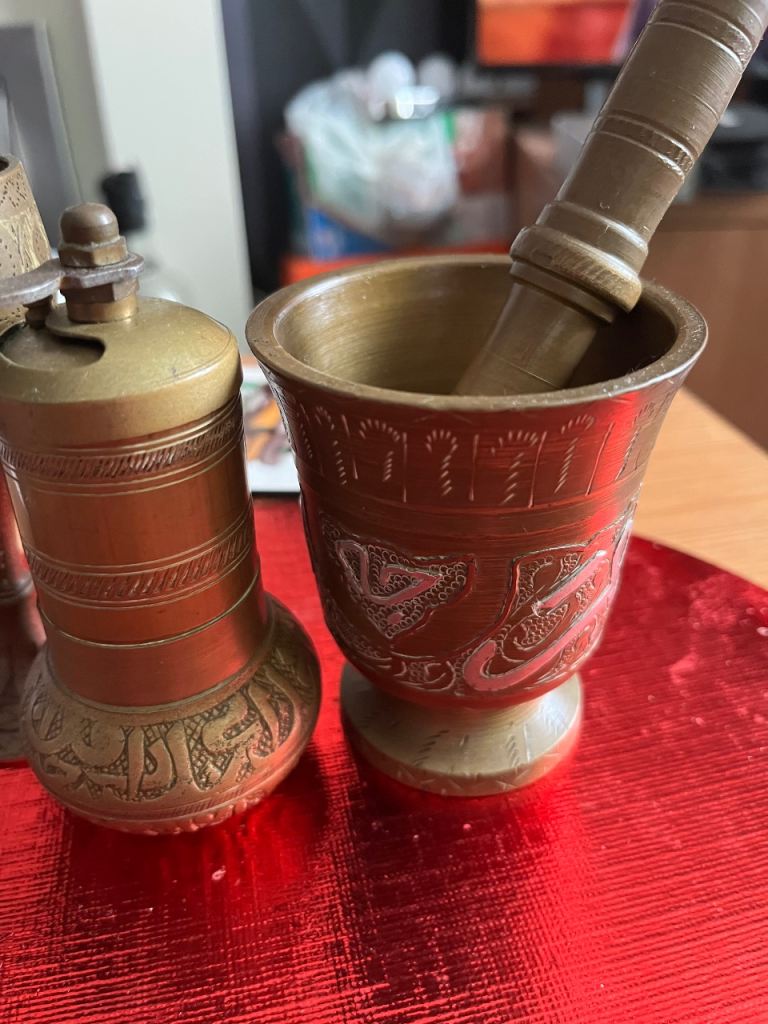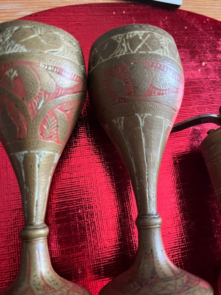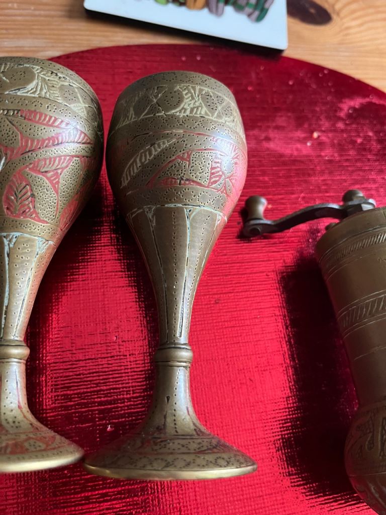 Very heavy brass pill crusher & brass grinder & 2 oriental goblets good selection for collectors or personal collection welcome to view afternoon/evening in mospark no posting no PayPal no transfers £75 Ono